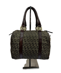 Authenticš„Fendi Zucca Zucchino FF Logo Boston Tote Bag