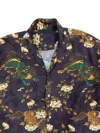Sun Surf - Vtg🔥Thunder Storm Komainu Lion Dog Camp Collar Hawaii Shirt