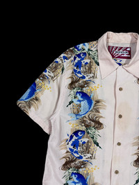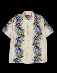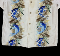 Vintage - Vtg🔥Houston Japan Boarder Carp Motif Aloha Rayon Camp Collar