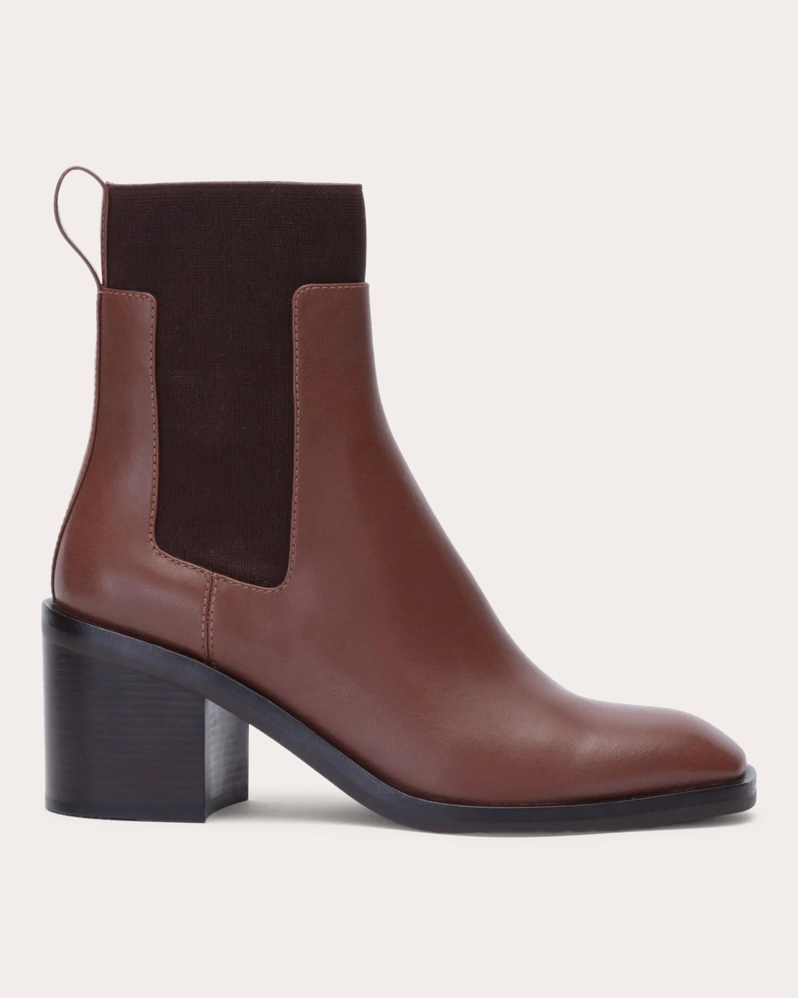 Set atop a sturdy rubber sole, the Alexa boot details its leather upper with elasticized side panels for comfortable wear. The squared toe and chunky block heel exude utilitarian appeal. Pull-on Looped heel tab Elasticized side panels Squared toe Upper: 100% cow leather Lining: 100% sheep leather Outsole: 100% rubber Spot clean Imported Size & Fit Heel height: 2.8in (70mm)