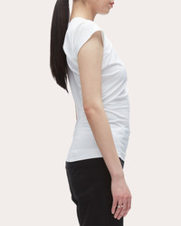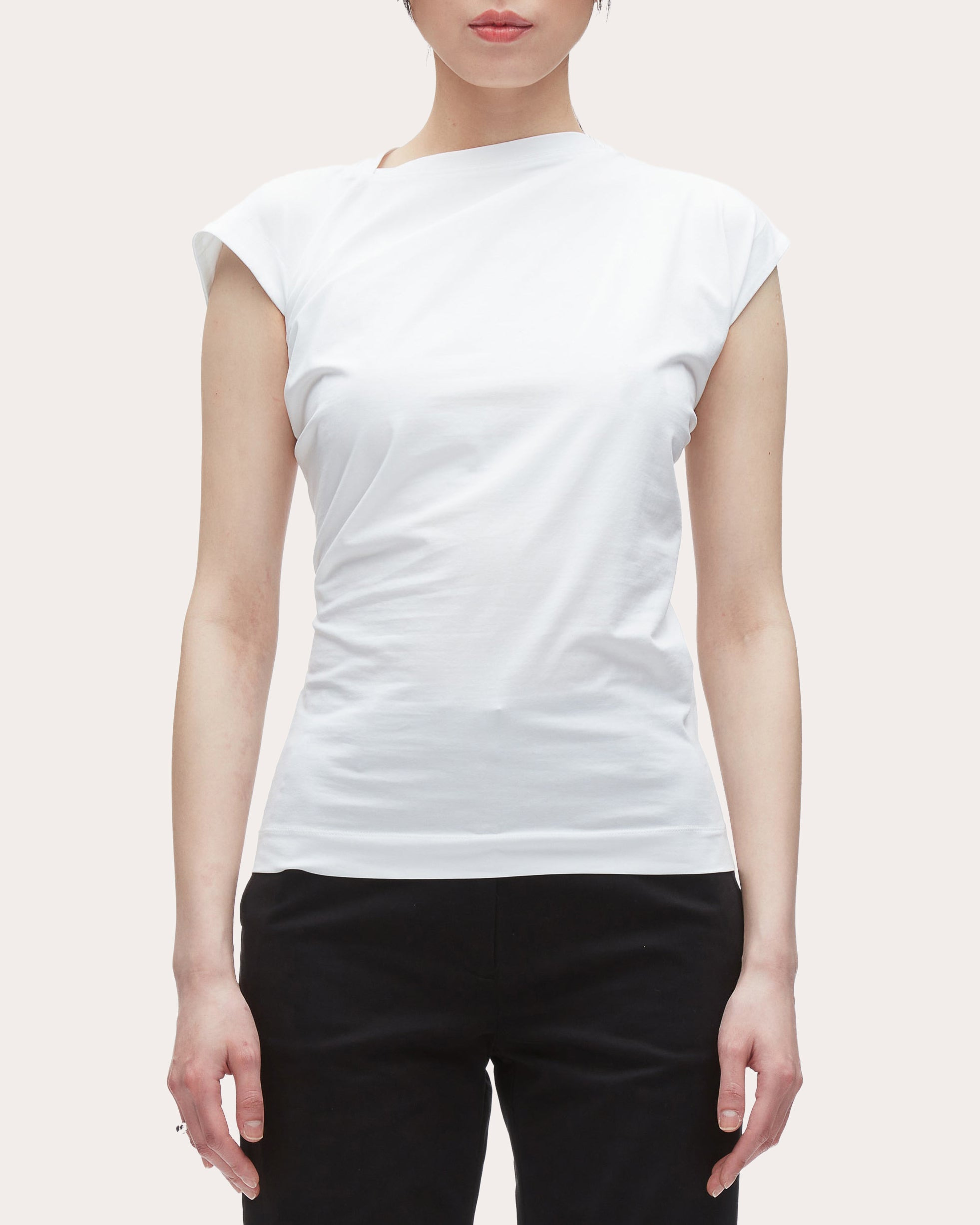 This soft, lightweight tee is elevated above the everyday thanks to an asymmetrical neckline. A refined knit and cap sleeves beckon to the classic tee silhouette. Designer color: white Mercerized cotton jersey Asymmetric neckline Cap sleeves 95% cotton, 5% elastane Dry clean only Made in China Size & Fit Model (wearing size 4): 5ft 10in tall, 30in bust, 23in waist, 34in hips