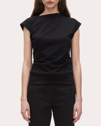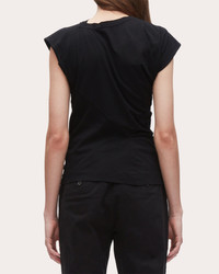 This soft, lightweight tee is elevated above the everyday thanks to an asymmetrical neckline. A refined knit and cap sleeves beckon to the classic tee silhouette. Designer color: black Mercerized cotton jersey Asymmetric neckline Cap sleeves 95% cotton, 5% elastane Dry clean only Made in China Size & Fit Model (wearing size 4): 5ft 10in tall, 30in bust, 23in waist, 34in hips