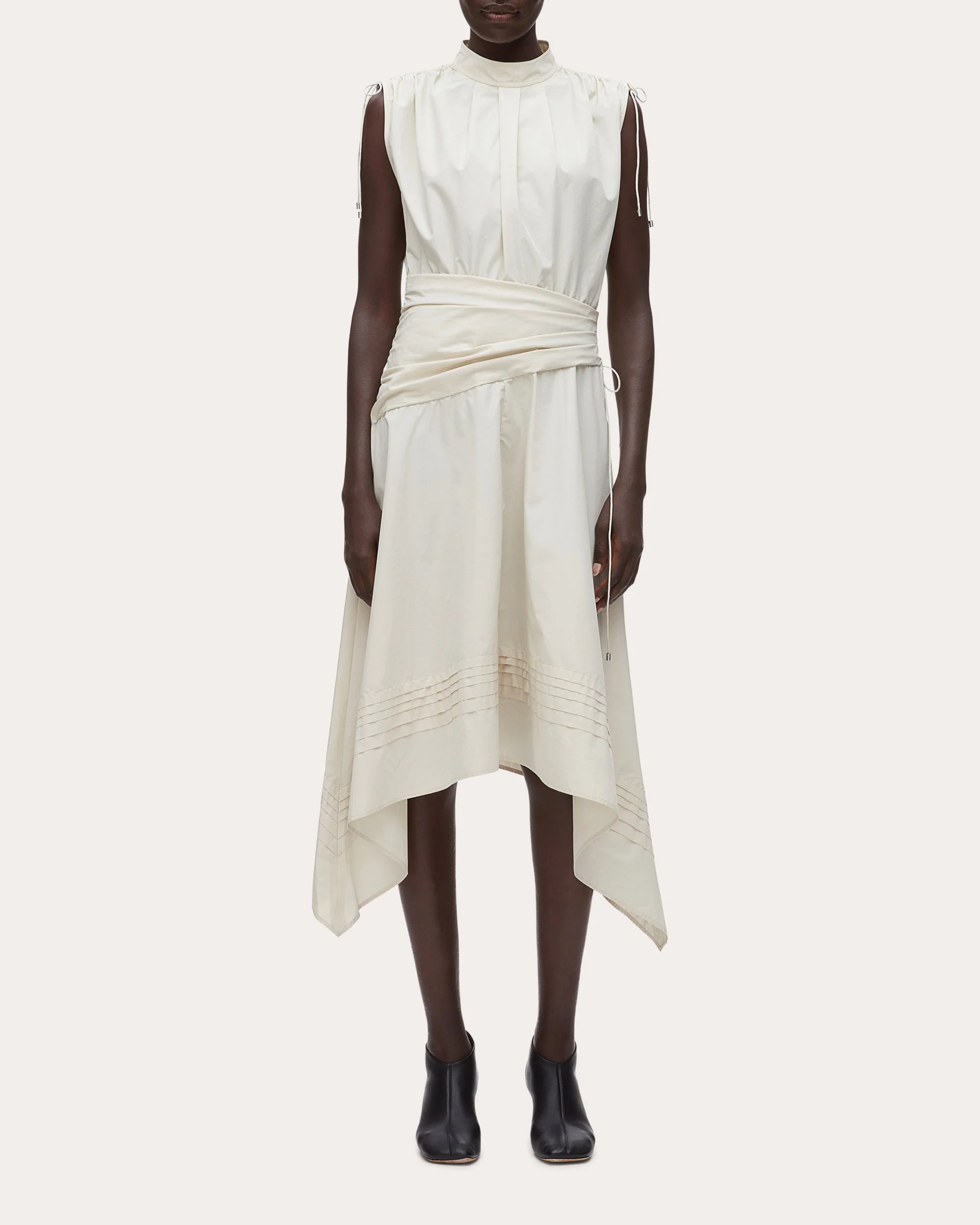 Crafted from crisp cotton poplin, this Phillip Lim dress frames its stand collar with ruched drawstring shoulders and pleated bodice details. Gathered throughout the waist, the skirt's pintucked folds and handkerchief hem create dimensional form. Designer color: stone Back keyhole button closure Stand collar Ruched drawstring shoulders Pleated bodice details Gathered waist Pintucked trim (skirt) Handkerchief hem Technical poplin 70% cotton, 30% polyester Dry clean only Imported Size & Fit Model (wearing size US 4): 5ft 10in tall, 30in bust, 23in waist, 34in hips Please note, below measurements reflect Phillip Lim's size chart, not the actual garment. Size US 00 (XS): 31in bust, 25in waist, 34in hips Size US 0 (XS): 32in bust, 26in waist, 35in hips Size US 2 (S): 33in bust, 27in waist, 36in hips Size US 4 (S): 34in bust, 28in waist, 37in hips Size US 6 (M): 35in bust, 29in waist, 38in hips Size US 8 (M): 36in bust, 30in waist, 39in hips Size US 10 (L): 37.5in bust, 31.5in waist, 40.5in hips Size US 12 (L): 39in bust, 33in waist, 42in hips