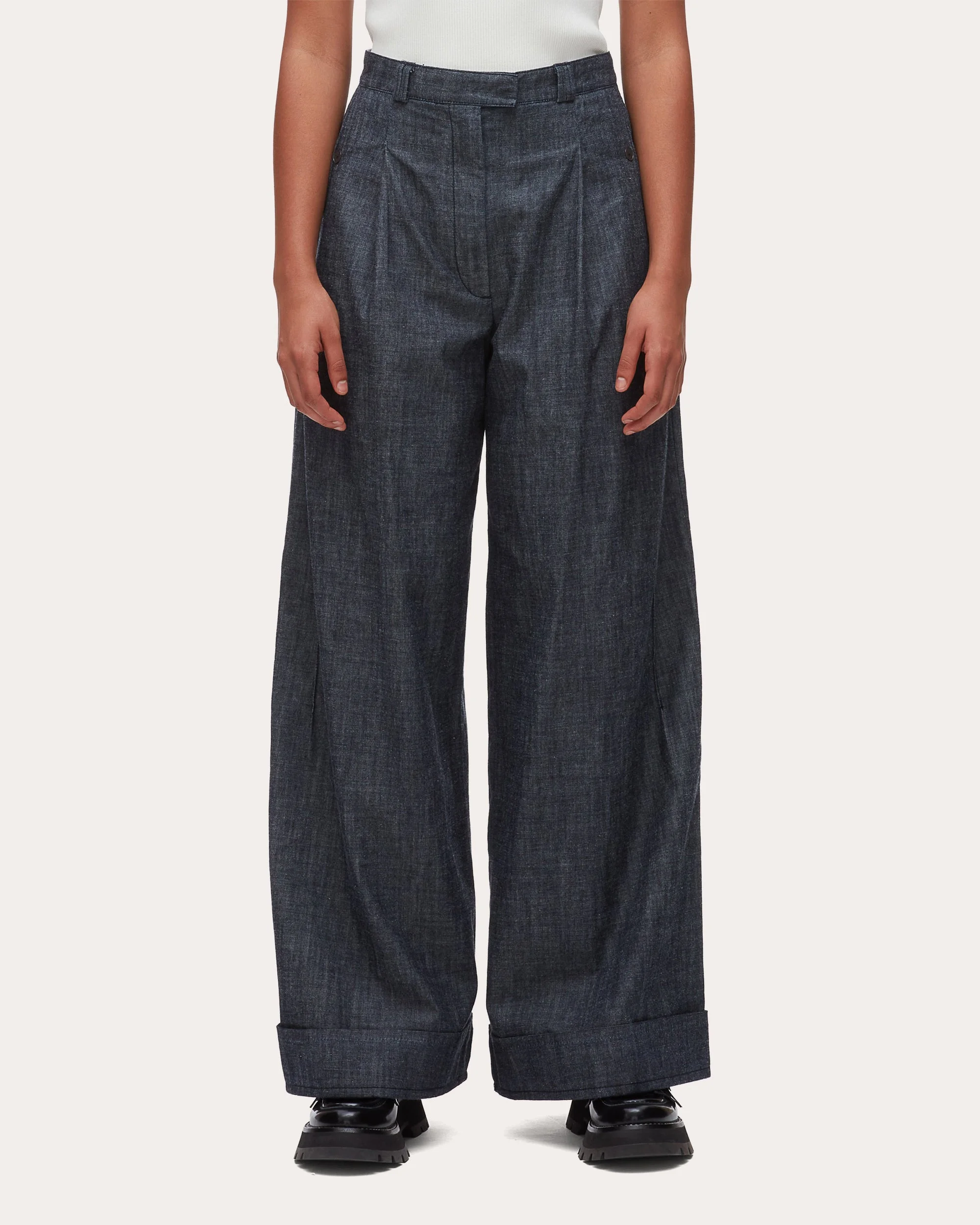 Expertly balancing structure and fluidity, these Phillip Lim pants are crafted from lightweight denim chambray. The wide-cut legs are shaped with pleated folds for tailored appeal. Designer color: washed indigo Zip-fly and hook closure Pleated details Side and back pockets Wide-cut legs Cuffed hems Denim chambray 100% cotton Dry clean only Imported Size & Fit Model (wearing size US 4): 5ft 10in tall, 30in bust, 23in waist, 34in hips Please note, below measurements reflect Phillip Lim's size chart, not the actual garment. Size US 00 (XS): 31in bust, 25in waist, 34in hips Size US 0 (XS): 32in bust, 26in waist, 35in hips Size US 2 (S): 33in bust, 27in waist, 36in hips Size US 4 (S): 34in bust, 28in waist, 37in hips Size US 6 (M): 35in bust, 29in waist, 38in hips Size US 8 (M): 36in bust, 30in waist, 39in hips Size US 10 (L): 37.5in bust, 31.5in waist, 40.5in hips Size US 12 (L): 39in bust, 33in waist, 42in hips