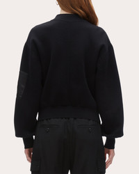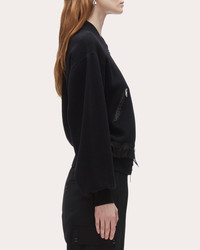 the perfect transitional piece, this bomber jacket is crafted from a structured knit with contrasting sateen panels. Adjustable waist ties allow for a custom fit. Designer color: black Contrast sateen panels Adjustable waist ties 51% cotton, 49% wool Dry clean only Made in China Size & Fit Model (wearing size 4): 5ft 10in tall, 30in bust, 23in waist, 34in hips