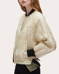Cut from stunning silk, this lightweight jacket features a bomber silhouette with slightly puffed sleeves, a blouson hem, and adjustable side buckles along the waist. Designer color: hay multi Yarn-dyed silk organza Silk-cotton voile lining Voluminous sleeves Blouson hem Adjustable side buckles 100% silk Dry clean only Made in China Size & Fit Model (wearing size 4): 5ft 10in tall, 30in bust, 23in waist, 34in hips