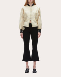 Plaid-Print Silk Organza Bomber Jacket