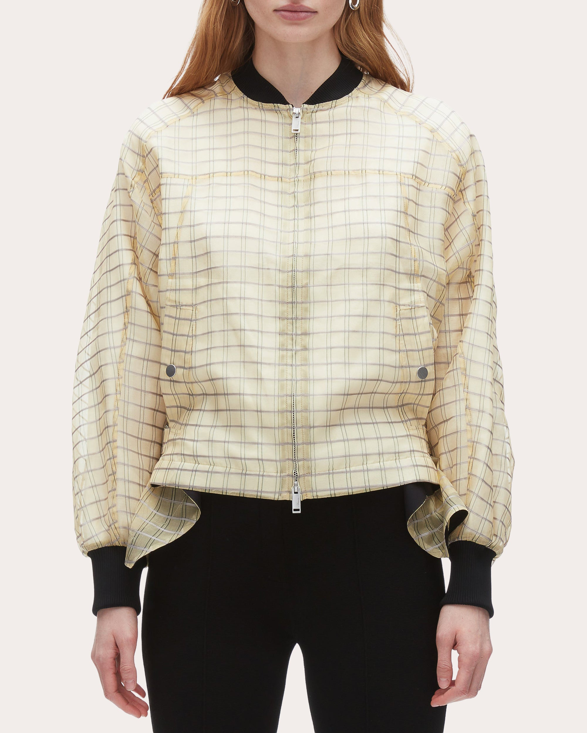 Plaid Organza Bomber Jacket