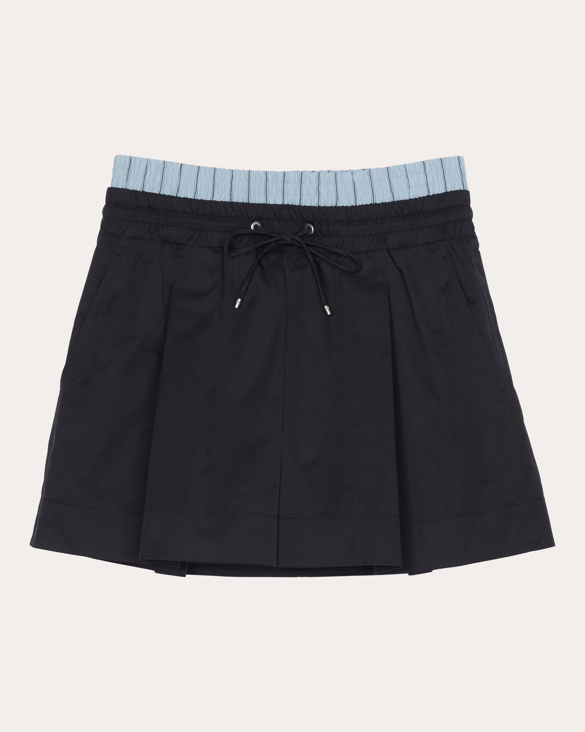 Fusing elements of preppy and sporty aesthetics, this Phillip Lim mini skirt gives the illusion of two layered pieces with its double waistband design. The ripstop silhouette is tailored with crisp pleats to create a flared A-line shape. Designer color: midnight Pull-on Double faux-layered waist Elasticized drawcord Pleated Ripstop 100% polyester Dry clean only Imported Size & Fit Model (wearing size S): 5ft 10in tall, 30in bust, 23in waist, 34in hips Please note, below measurements reflect Phillip Lim's size chart, not the actual garment. Size XS: 31-32in bust, 25-26in waist, 34-35in hips Size S: 33-34in bust, 27-28in waist, 36-37in hips Size M: 35-46in bust, 29-30in waist, 38-39in hips Size L: 37.5-39in bust, 31.5-33in waist, 40.5-42in hips