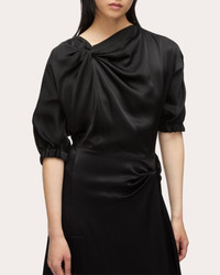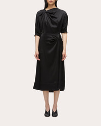 Brought to life in fluid satin, this Phillip Lim midi dress embraces asymmetrically draped dimension with twisted knot motifs at the shoulder and hip. Elasticized back waist trim creates gently fitted shape. Back button closure Twisted knot details Draped bodice Elasticized trim (waist, sleeve cuffs) Satin 100% viscose Dry clean Made in China Size & Fit Model (wearing size US 4): 5ft 10in tall True to size. Designed for a relaxed fit. Mid-weight, non-stretchy fabric. Please note, below measurements reflect Phillip Lim's size chart, not the actual garment. Size US 00 (XS): 31in bust, 25in waist, 34in hips Size US 0 (XS): 32in bust, 26in waist, 35in hips Size US 2 (S): 33in bust, 27in waist, 36in hips Size US 4 (S): 34in bust, 28in waist, 37in hips Size US 6 (M): 35in bust, 29in waist, 38in hips Size US 8 (M): 36in bust, 30in waist, 39in hips Size US 10 (L): 37.5in bust, 31.5in waist, 40.5in hips Size US 12 (L): 39in bust, 33in waist, 42in hips