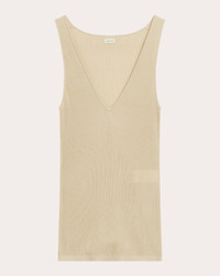 An elevated essential, the Rory tank features a V-neck silhouette crafted from a flexible rib knit. The warm brown hue exudes minimalist appeal while maximizing styling potential. Pull-on Ribbed knit 100% Tencel™ lyocell Hand wash, dry flat Imported Size & Fit Garment measurements (size S): 24.8in long from high point of shoulder to hem, 12.6in chest width, 12.4in waist width, 12.99in hem width Model (wearing size S): 5ft 6in tall Fits true to size Size EU 32 (XXS/US 2): 31in chest, 24in waist, 34in seat Size EU 34 (XS/US 4): 32in chest, 25in waist, 35in seat Size EU 36 (S/US 6): 34in chest, 27in waist, 37in seat Size EU 38 (M/US 8): 35in chest, 28in waist, 38in seat Size EU 40 (L/US 10): 37in chest, 30in waist, 40in seat Size EU 42 (XL/US 12): 39in chest, 32in waist, 42in seat Size EU 44 (XXL/US 14): 42in chest, 34in waist, 45in seat Please note, above measurements reflect By Malene Birger’s size chart, not the actual garment. Sustainability Metrics: Organic Materials: at least 60% of materials used for production come from natural sources and do not contain harmful toxins or waste Animal Welfare: products do not contain any animal furs or skins and all materials are 100% cruelty-free Read more about Olivela's sustainability pillars here .