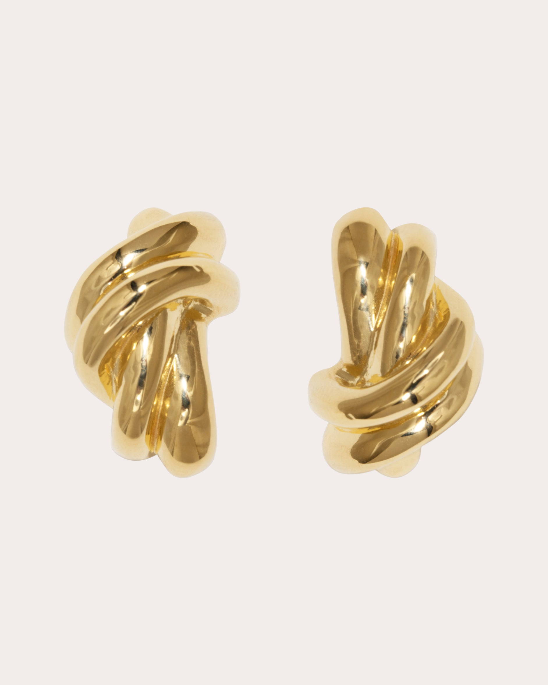 Based in plated 18-karat gold, these earrings draw design inspiration from rivers that course one way, reverse and then flow back in the opposite direction. True to their muse, the post-back pair is formed from overlapping curves of tubular motifs. Post-back closure 18k gold-plated recycled sterling silver Polish with soft cloth Made in Thailand Measurements Width: 0.59in Length: 0.83in
