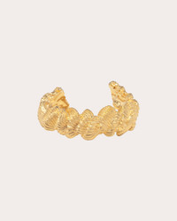 Crafted from plated 18-karat gold, this Completedworks cuff bracelet features a sculpturally grooved design that mimics the look of piped buttercream frosting. 18k gold-plated brass Polish with soft cloth Made in Thailand Measurements Width: 1in Circumference: 7in