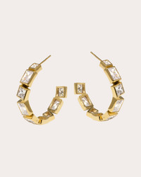 Geometrically glamorous, these Completedworks hoop earrings shimmer with bezel-set cubic zirconia stones cut in various four-sided shapes. The 18-karat gold-plated base is crafted from recycled silver for sustainable appeal. Butterfly post back closure 18k gold-plated recycled silver and cubic zirconia Spot clean Made in Thailand Measurements Width: 0.19in Length: 1.18in Sustainability Metrics: Natural Resources: at least 50% of materials used are produced with a reduced environmental impact Conflict-Free: 100% of products are recycled or conflict-free and adhere to fair trade and labor Read more about Olivela's sustainability pillars here .