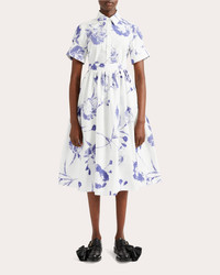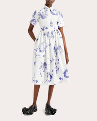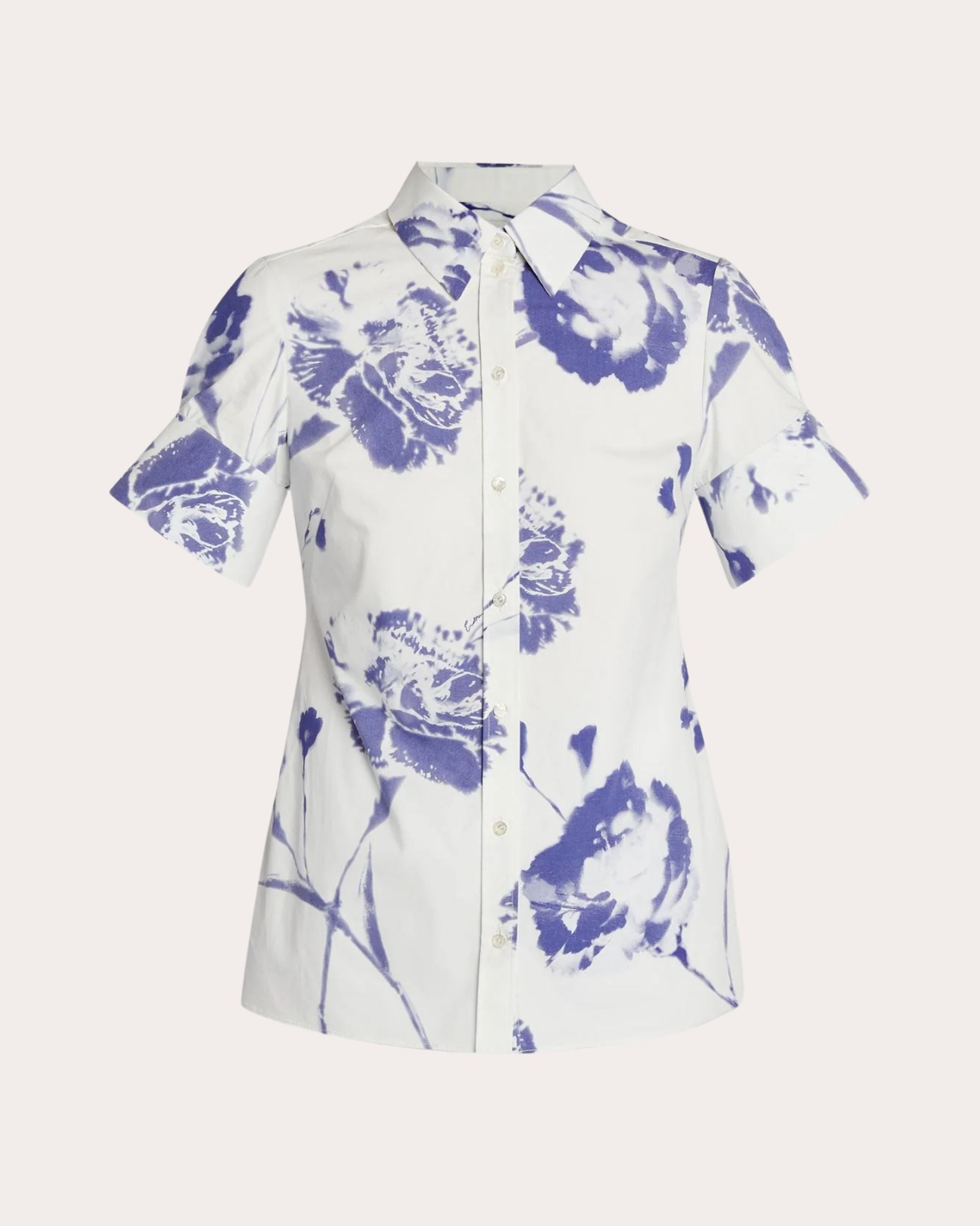 Crafted from floral-print cotton poplin, this short-sleeve button-up draws inspiration from traditional shirting with its collared neckline and seamed back yoke. Darted seams create flattering, feminine shape. Button closure Collared neckline Seamed back yoke Split button sleeve cuffs Darted seams Poplin 100% organic cotton Dry clean Made in Moldova Size & Fit True to size. Designed to be slightly loose. Mid-weight, non-stretchy fabric. Garment measurements (size UK 4 / US 0): 26.8in long from high point of shoulder to hem, 35.9in bust, 31.8in waist, 39in hips, 15.2in shoulder width, 8.9in sleeve length Garment measurements (size UK 6 / US 2): 26.9in long from high point of shoulder to hem, 36.7in bust, 32.6in waist, 39.8in hips, 15.4in shoulder width, 9in sleeve length Garment measurements (size UK 8 / US 4): 27in long from high point of shoulder to hem, 37.5in bust, 33.4in waist, 40.6in hips, 15.6in shoulder width, 9.1in sleeve length Garment measurements (size UK 10 / US 6): 27.3in long from high point of shoulder to hem, 39.1in bust, 35in waist, 42.1in hips, 15.9in shoulder width, 9.3in sleeve length Garment measurements (size UK 12 / US 8): 27.5in long from high point of shoulder to hem, 41in bust, 36.9in waist, 44.1in hips, 16.3in shoulder width, 9.6in sleeve length Garment measurements (size UK 14 / US 10): 27.8in long from high point of shoulder to hem, 43in bust, 38.9in waist, 46.1in hips, 16.7in shoulder width, 9.8in sleeve length