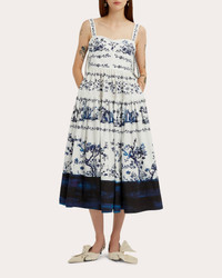 Tiered Floral-Print Cotton-Poplin Midi Dress