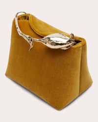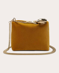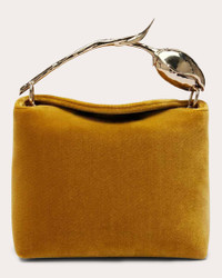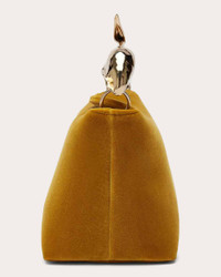 Embodying ERDEM’s language of poetic and modern femininity, the Bloom bag tops its velvet silhouette with a goldtone flower bud handle. The petal-shaped magnetic closure opens to reveal a lined, pocketed interior for optimal storage. Includes detachable crossbody strap Goldtone brass floral top handle Magnetic closure Interior slip pocket Velvet Outer: 100% polyester Lining: 100% kid suede Spot clean Made in Italy Measurements Width: 6.3in Height: 4.72in Depth: 4.33in Strap drop: 19-22in