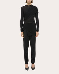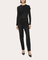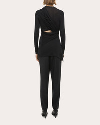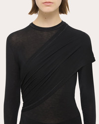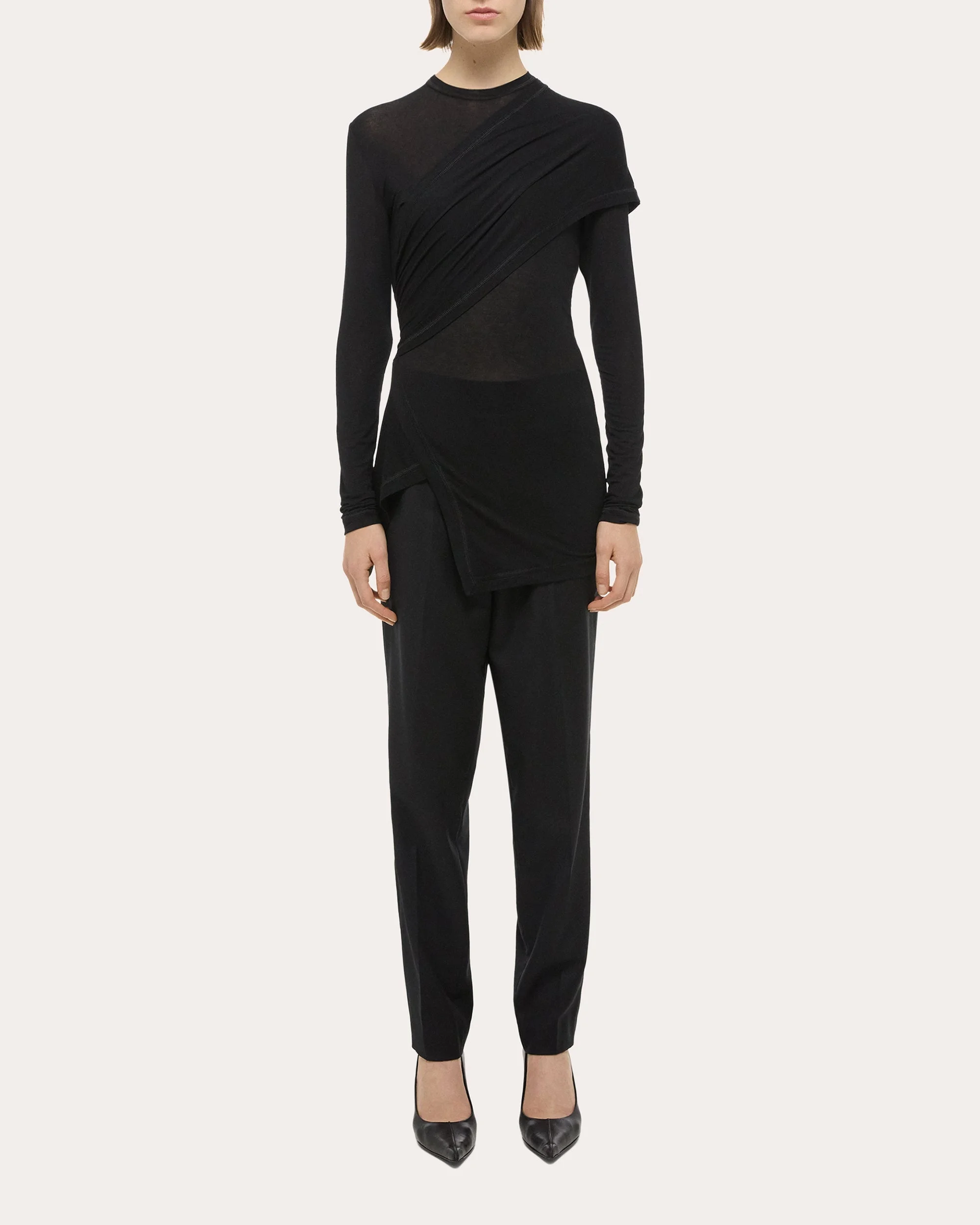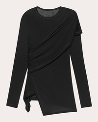 Dynamic in form, this Helmut Lang top details its stretch jersey silhouette with draped wrap panels to create layered dimension. The cutout back and asymmetric hem exude avant-garde intrigue. Designer color: black Pull-on Draped layered wrap panels Cutout back detail Asymmetric hem Jersey 94% lyocell, 6% elastane Dry clean Made in China Size & Fit Model (wearing size S): 5ft 11in tall Fits true to size Please note, below measurements reflect Helmut Lang's size chart, not the actual garment. Size XS: 30-31in bust, 24-25in waist, 34-35in hips Size S: 32-33in bust, 26-27in waist, 36-37in hips Size M: 34-35in bust, 28-29in waist, 38-39in hips Size L: 36-37in bust, 30-31in waist, 40-41in hips Size XL: 38-39in bust, 32-33in waist, 42-43in hips