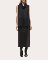 Crafted from semi-sheer slub organza, this Helmut Lang top embraces soft dimension with its draped cowl neckline. The stepped, side-slit hem emphasizes the bias-cut silhouette's fluid shape. Designer color: black Pull-on Bias-cut cowl neckline Step hem with side slits Semi-sheer slub organza 100% polyester Dry clean only Made in China Size & Fit Model (wearing size S): 5ft 11in tall Fits true to size Please note, below measurements reflect Helmut Lang's size chart, not the actual garment. Size XS: 30-31in bust, 24-25in waist, 34-35in hips Size S: 32-33in bust, 26-27in waist, 36-37in hips Size M: 34-35in bust, 28-29in waist, 38-39in hips Size L: 36-37in bust, 30-31in waist, 40-41in hips Size XL: 38-39in bust, 32-33in waist, 42-43in hips