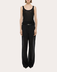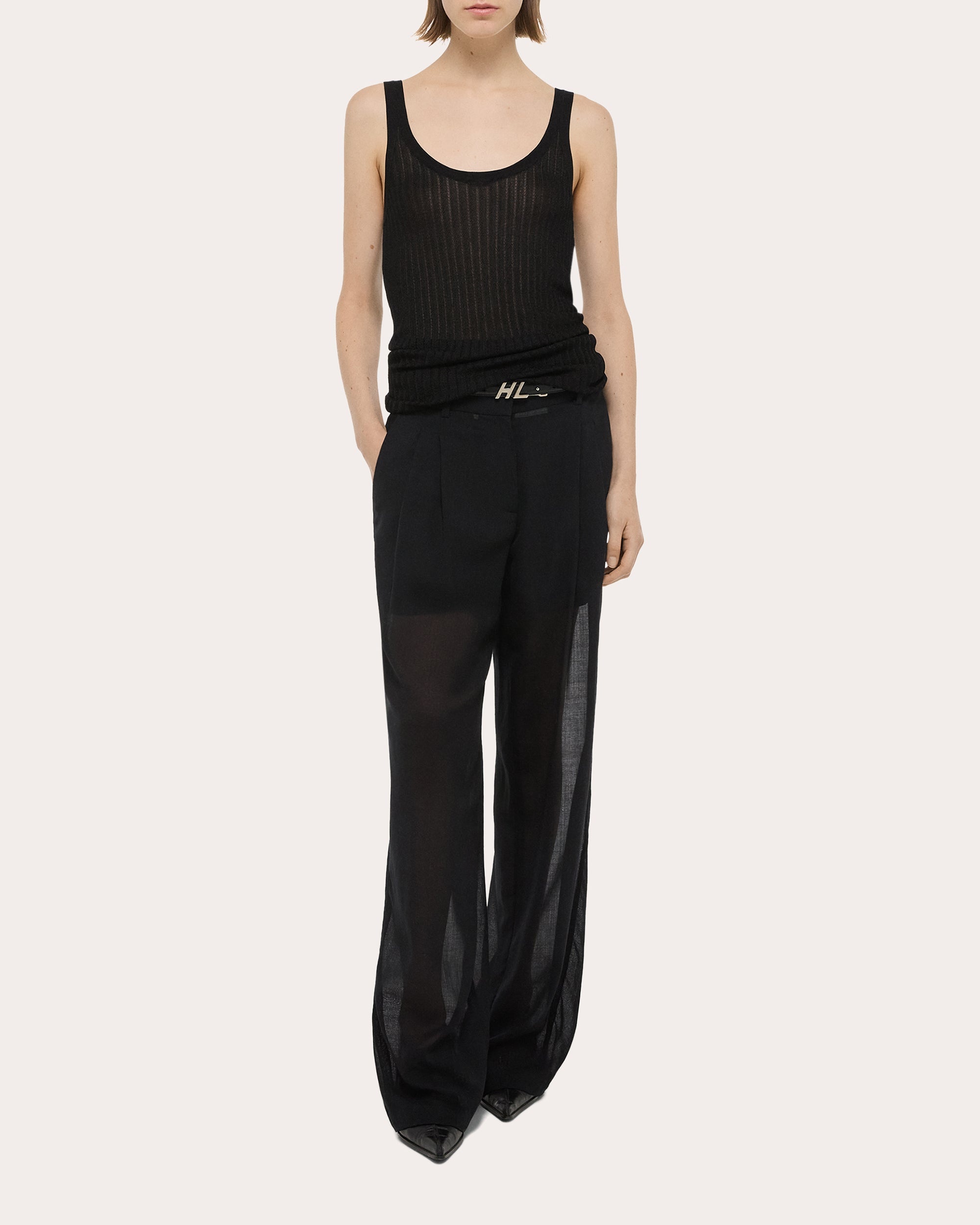 An elevated basic, this Helmut Lang tank top crafts its scoop neck silhouette from a sheer pointelle rib knit. Pull-on Contrast rib trim Sheer pointelle rib knit 88% viscose, 12% nylon Dry clean Made in China Size & Fit Garment measurements (size S): 24.5in long from high point of shoulder to hem, 30in bust, 31.25in hips Model (wearing size S): 5ft 10in tall Fits true to size Please note, below measurements reflect Helmut Lang's size chart, not the actual garment. Size XS: 30-31in bust, 24-25in waist, 34-35in hips Size S: 32-33in bust, 26-27in waist, 36-37in hips Size M: 34-35in bust, 28-29in waist, 38-39in hips Size L: 36-37in bust, 30-31in waist, 40-41in hips Size XL: 38-39in bust, 32-33in waist, 42-43in hips