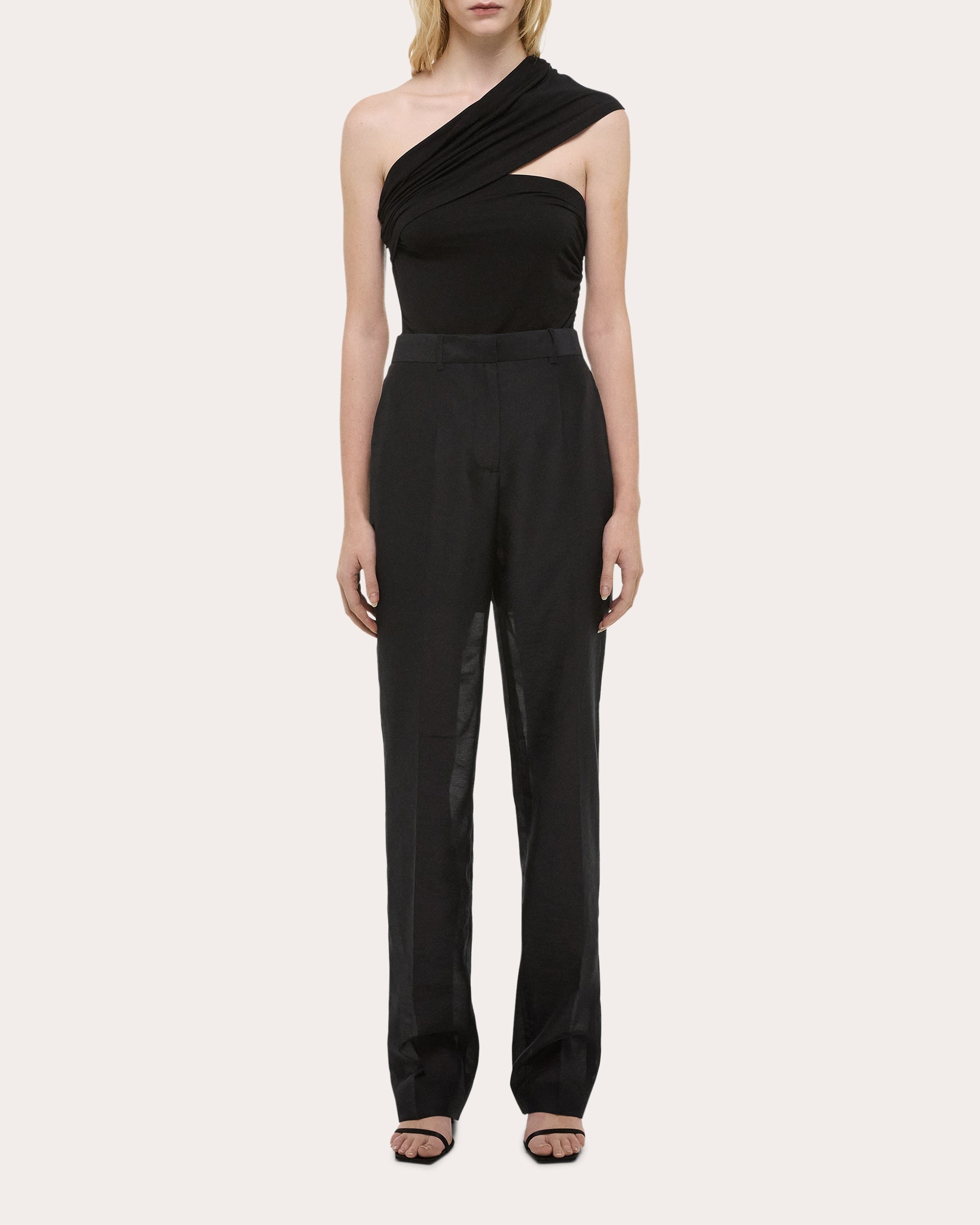 Brought to life in slub organza, these Helmut Lang trousers are partially lined to create a semi-sheer effect below the mid thighs. The mid-rise silhouette gently tailors its straight-cut legs with pressed front creases. Designer color: black Zip-fly and hook bar closure Mid-rise Straight-cut legs Side and back pockets Partially lined Sheer slub organza 100% polyester Dry clean only Made in China Size & Fit Garment measurements (size US 4): 33.5in inseam, 10.375in front rise Model (wearing size US 2): 5ft 10in tall Fits true to size Please note, below measurements reflect Helmut Lang's size chart, not the actual garment. Size US 0: 31.5in bust, 25in waist, 35in hips Size US 2: 32.5in bust, 26in waist, 36in hips Size US 4: 33.5in bust, 27in waist, 37in hips Size US 6: 34.5in bust, 28in waist, 38in hips Size US 8: 35.5in bust, 29in waist, 39in hips Size US 10: 36.5in bust, 30in waist, 40in hips Size US 12: 38in bust, 31.5in waist, 41.5in hips