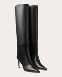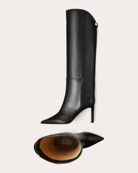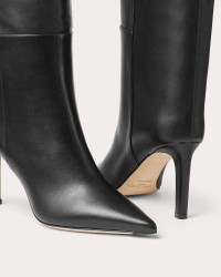 Rooted in equestrian inspiration, the Alizze boot crafts its knee-high silhouette from genuine calf leather. The pointed toe and stiletto heel exude an air of timeless sophistication. Pull-on Button strap (top back shaft) Pointed toe Stiletto heel Stitched vamp details Upper: 100% calf leather Lining: 100% goat leather Outsole: 95% calf leather, 5% rubber Spot clean Made in Italy Size & Fit Heel height: 3.34in (85mm)