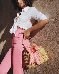 Bon Bon Bucket Natural Raffia Fringe Bucket Bag
