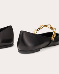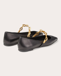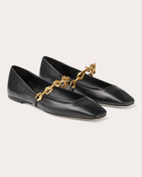 Diamond Tilda Flat Black Nappa Leather Flats with Chain
