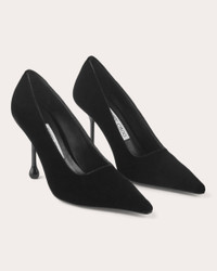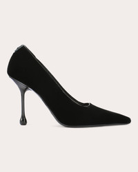 Crafted from luxe black velvet, the Ixia pump puts a contemporary spin on classic designs with its square-cut vamp and dropped stiletto heel shape. Elongated into a blunt finish, the pointed toe creates a flattering leg-lengthening effect. Slip-on Blunt pointed toe Dropped stiletto heel Square-cut vamp Velvet Upper: 98% textile, 2% calf leather Lining: 100% lamb leather Outsole: 50% calf leather, 50% rubber Spot clean Made in Italy Size & Fit Heel height: 3.74in (95mm) Fits true to size