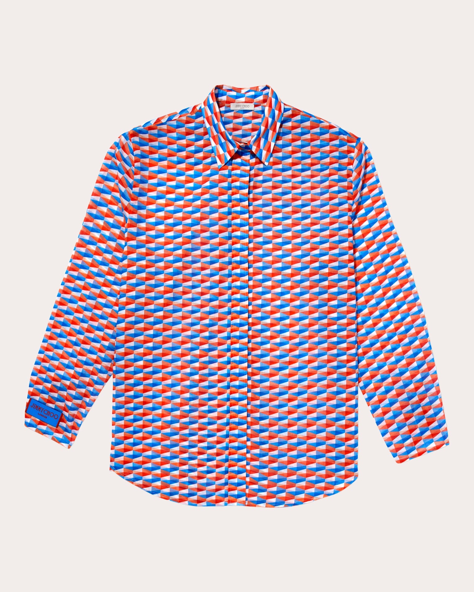 Cut from crisp organic cotton, the Lona shirt complements its colorful diamond print with an embroidered Jimmy Choo label on the sleeve. The collared neckline, front button placket and pleated back yoke reflect traditional tailoring. Button closure Collared neckline Dropped shoulders Pleated back yoke Button sleeve cuffs Signature logo label (sleeve) 100% organic cotton Dry clean Made in Italy Size & Fit Garment measurements (size XS): 28.9in long from high point of shoulder to hem, 47.24in bust, 23.22in sleeve length Garment measurements (size S): 29.52in long from high point of shoulder to hem, 48.81in bust, 23.62in sleeve length Garment measurements (size M): 30.11in long from high point of shoulder to hem, 50.39in bust, 24.01in sleeve length Garment measurements (size L): 30.7in long from high point of shoulder to hem, 51.96in bust, 24.4in sleeve length