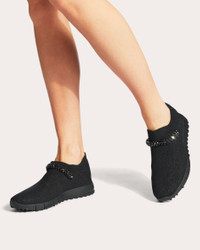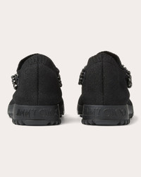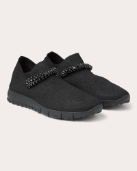 Merging practicality and glamour, the Verona sneaker decorates its sock knit upper with shimmering crystal embellishments. The lightweight rubber sole displays signature Jimmy Choo branding for elevated appeal. Pull-on Elasticized trim Crystal embellishments Embossed logo details (back sole) Knit Upper: 100% textile Outsole: 100% rubber Spot clean Made in Italy Size & Fit Fits true to size