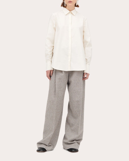 Rooted in traditional suiting, the Pemma trousers are tailored with pleated front details that give way to a flattering, effortless shape throughout the legs. Spun from a wool-cotton blend, the herringbone melange construction creates an elevated aesthetic. Zip-fly and hook closure Belt loops Front pleat details Side and back pockets Herringbone melange 56% wool, 32% cotton, 12% polyamide Dry clean only Made in Lithuania Size & Fit Garment measurements (size EU 36 / US 4): 46.06in outseam, 29in waist Size EU 32 (US 0 / XXS): 31.5in bust, 24.02in waist, 34.25in hips, 14.33in shoulder width Size EU 34 (US 2 / XS): 33.07in bust, 25.59in waist, 35.83in hips, 14.72in shoulder width Size EU 36 (US 4 / S): 34.65in bust, 27.17in waist, 37.4in hips, 15.12in shoulder width Size EU 38 (US 6 / M): 36.61in bust, 28.74in waist, 38.98in hips, 15.51in shoulder width Size EU 40 (US 8 / L): 38.19in bust, 30.71in waist, 40.94in hips, 15.98in shoulder width Size EU 42 (US 10 / XL): 40.16in bust, 32.68in waist, 42.91in hips, 16.46in shoulder width Size EU 44 (US 12 / XXL): 42.13in bust, 34.65in waist, 44.88in hips, 16.93in shoulder width Please note, above measurements reflect MKDT's size chart, not the actual garment.