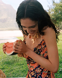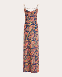 A vibrant display of paisley and florals, this Rabanne dress falls in fluid form from its draped cowl neckline to maxi-length hem. Gold-tone chain straps are comprised of signature '8' links in a nod to the brand's inaugural collections. Designer color name: Cachemire Navy Signature '8' chain straps Decorative neck chain Gold-tone hardware Draped cowl neckline 100% polyester Dry clean only Made in Tunisia Size & Fit True to size. Designed for a slim fit. Lightweight, flowy, non-stretchy fabric. Size FR 34 (US 2 / XS): 31.89in chest, 24.02in waist, 34.25in hips Size FR 36 (US 4 / S): 33.46in bust, 25.59in waist, 35.83in hips Size FR 38 (US 6 / M): 35.04in bust, 27.17in waist, 37.4in hips Size FR 40 (US 8 / L): 36.61in bust, 28.74in waist, 38.98in hips Size FR 42 (US 10 / XL): 38.19in bust, 30.31in waist, 40.55in hips Size FR 44 (US 12 / XXL): 39.76in bust, 31.89in waist, 42.13in hips Please note, above measurements reflect Rabanne's size chart, not the actual garment.