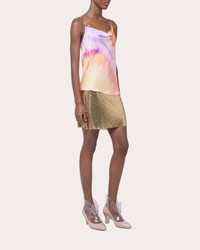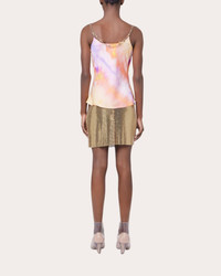 A maximum impact mini, this Rabanne skirt is crafted from gold-tone aluminum mesh. Back waist darts create flattering shape. Designer color name: New Gold Button closure Darted waist (back) Gold-tone finish Unlined 100% aluminum Dry clean Made in Madagascar Size & Fit Fits true to size. Designed to be worn just below the natural waist. If you are in between sizes, we recommend taking the smaller size. Mid-weight, semi-sheer, non-stretchy fabric. Please note, below measurements reflect Rabanne's size chart, not the actual garment. Size FR 34 (US 2 / XS): 31.89in chest, 24.02in waist, 34.25in hips Size FR 36 (US 4 / S): 33.46in bust, 25.59in waist, 35.83in hips Size FR 38 (US 6 / M): 35.04in bust, 27.17in waist, 37.4in hips Size FR 40 (US 8 / L): 36.61in bust, 28.74in waist, 38.98in hips Size FR 42 (US 10 / XL): 38.19in bust, 30.31in waist, 40.55in hips Size FR 44 (US 12 / XXL): 39.76in bust, 31.89in waist, 42.13in hips