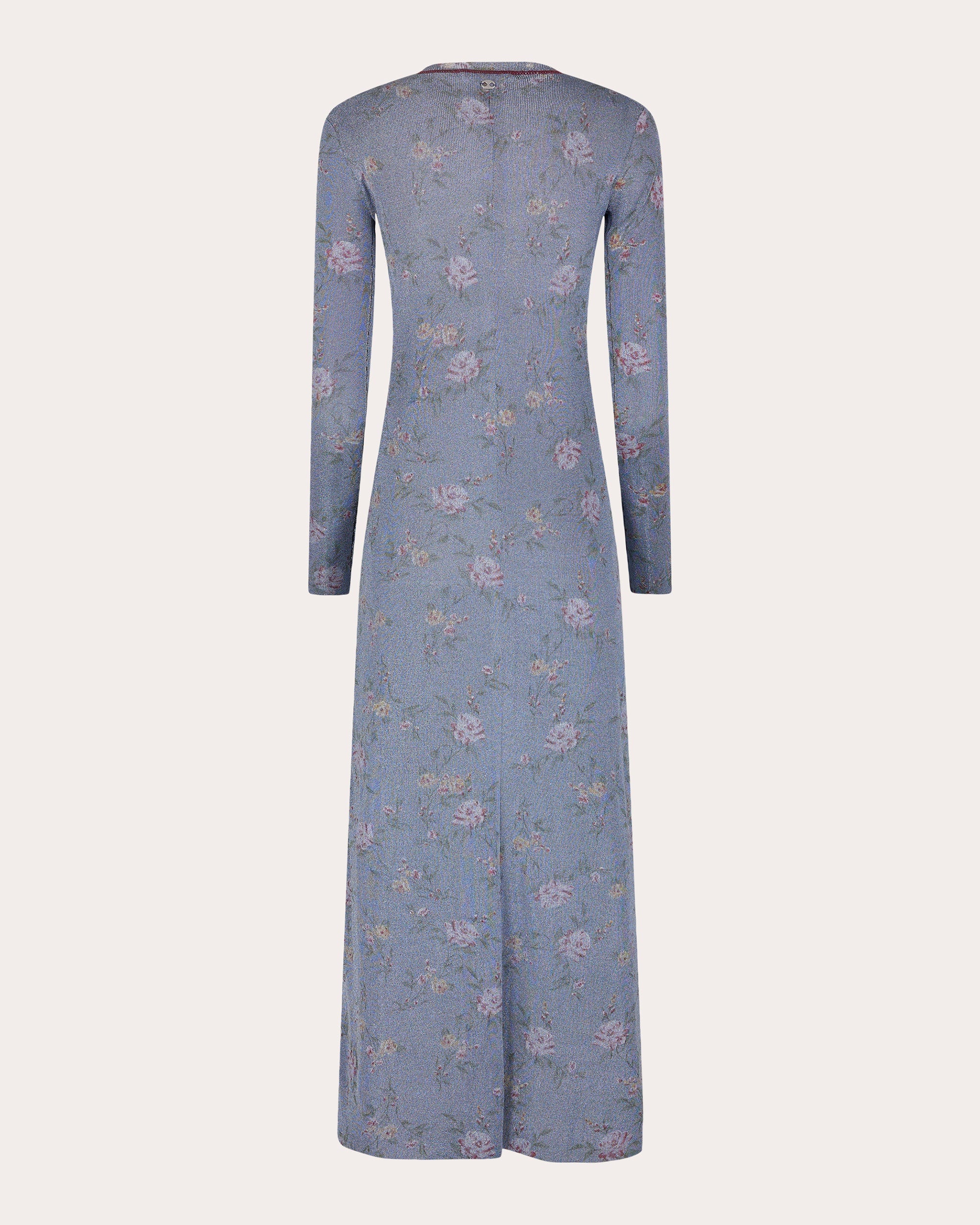 Cut with a form-fitting shape, this Rabanne maxi dress is crafted from a metallic floral knit to create subtle shimmer. The crewneck collar is detailed with contrast stitch trim. Designer color name: Light Blue Pull-on Contrast stitch trim (collar) Slit back hem Knit Self: 49% viscose, 35% metallic polyester, 16% polyester Dry clean Made in China Size & Fit Garment measurements (size XS): 52.76in long from center back neckline to hem, 28.35in bust, 25.2in waist Fits true to size. Designed for a slim fit. Mid-weight knit. Please note, below measurements reflect Rabanne's size chart, not the actual garment. Size XS (FR 34 / US 2: 31.89in chest, 24.02in waist, 34.25in hips Size S (FR 36 / US 4): 33.46in bust, 25.59in waist, 35.83in hips Size M (FR 38 / US 6): 35.04in bust, 27.17in waist, 37.4in hips Size L (FR 40 / US 8): 36.61in bust, 28.74in waist, 38.98in hips Size XL (FR 42 / US 10: 38.19in bust, 30.31in waist, 40.55in hips Size XXL (FR 44 / US 12): 39.76in bust, 31.89in waist, 42.13in hips