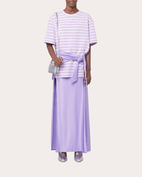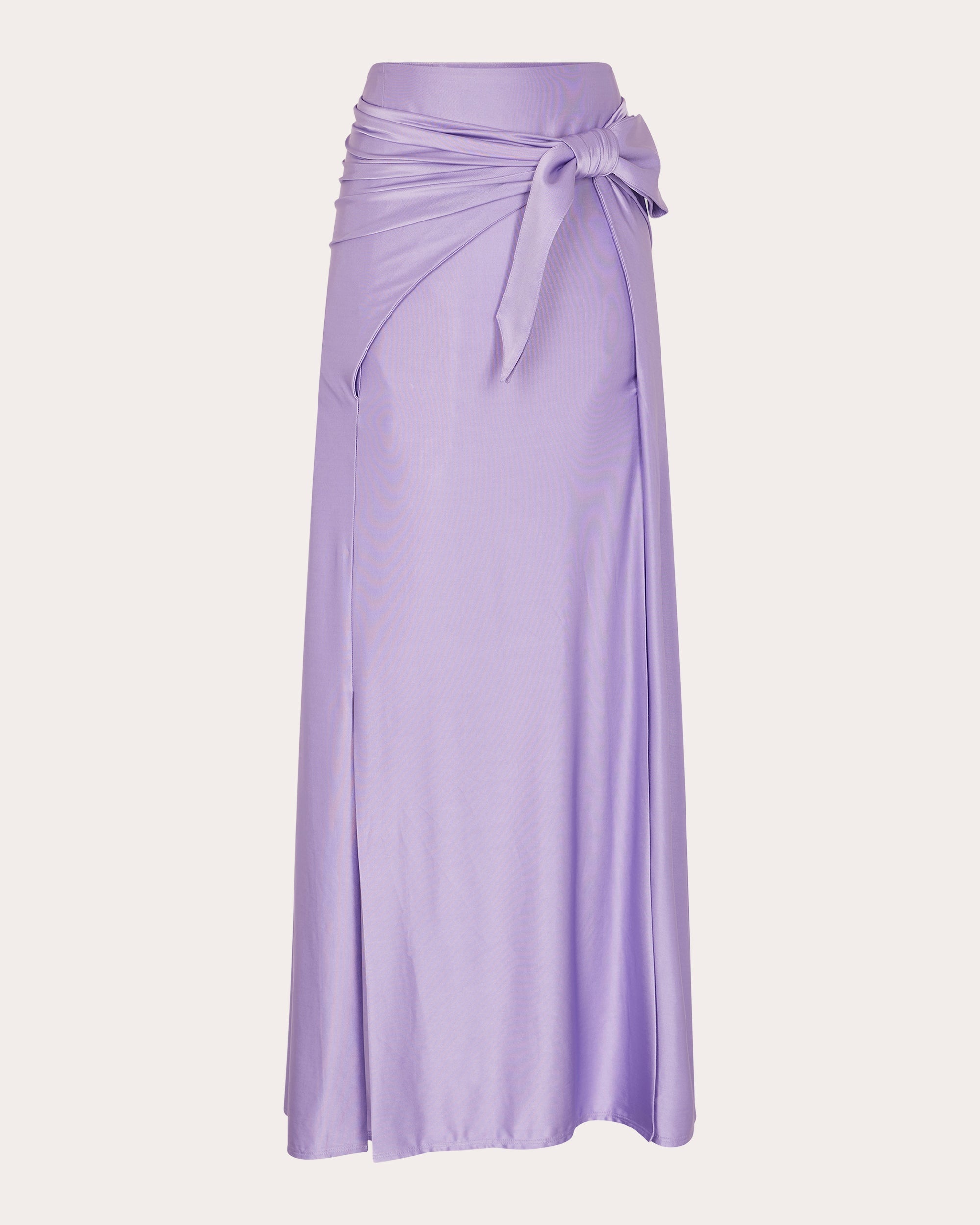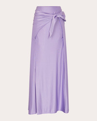 Casually elevated, this Rabanne maxi skirt is crafted from lustrous satin jersey. Daringly high hem slits and a gathered tie at the waist create a uniquely dimensional wrap shape. Designer color name: Lavender Side-zip closure Gathered wrap tie (waist) Darted back waist Side-slit hem Satin jersey 90% viscose, 10% elastane Dry clean Made in Madagascar Size & Fit Model (wearing size FR 36 / US 4): 5ft 11in tall True to size. Designed to be worn at the waist, slightly fitted through hip. Mid-weight, slightly stretchy fabric. Please note, below measurements reflect Rabanne's size chart, not the actual garment. Size FR 34 (US 2 / XS): 31.89in chest, 24.02in waist, 34.25in hips Size FR 36 (US 4 / S): 33.46in bust, 25.59in waist, 35.83in hips Size FR 38 (US 6 / M): 35.04in bust, 27.17in waist, 37.4in hips Size FR 40 (US 8 / L): 36.61in bust, 28.74in waist, 38.98in hips Size FR 42 (US 10 / XL): 38.19in bust, 30.31in waist, 40.55in hips Size FR 44 (US 12 / XXL): 39.76in bust, 31.89in waist, 42.13in hips