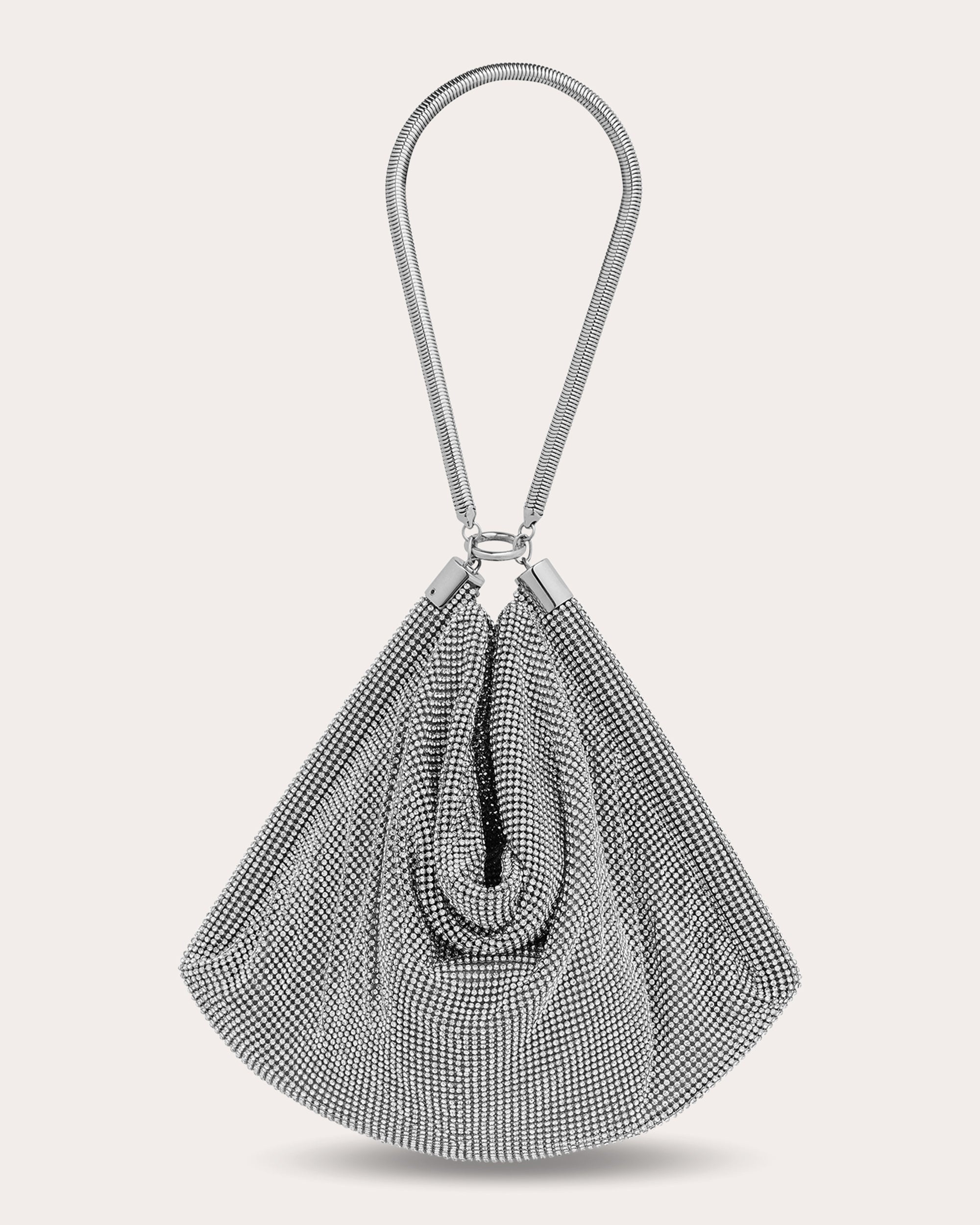 A nod to Rabanne's roots, this slouchy bag decorates its silvertone pixel mesh body with tonal crystal embellishments for a shimmering, light-reflecting effect. The tubular shoulder strap extends down the sides of the bag to create a semi-structured frame for the trapezoidal silhouette. Designer color name: Silver/Crystal Zip closure Tubular strap Crystal embellishments Silvertone pixel mesh 40% brass, 40% glass, 15% lamb leather, 5% steel Spot clean Made in China Measurements Width: 11.81in Height: 7.48in Depth: 0.59in