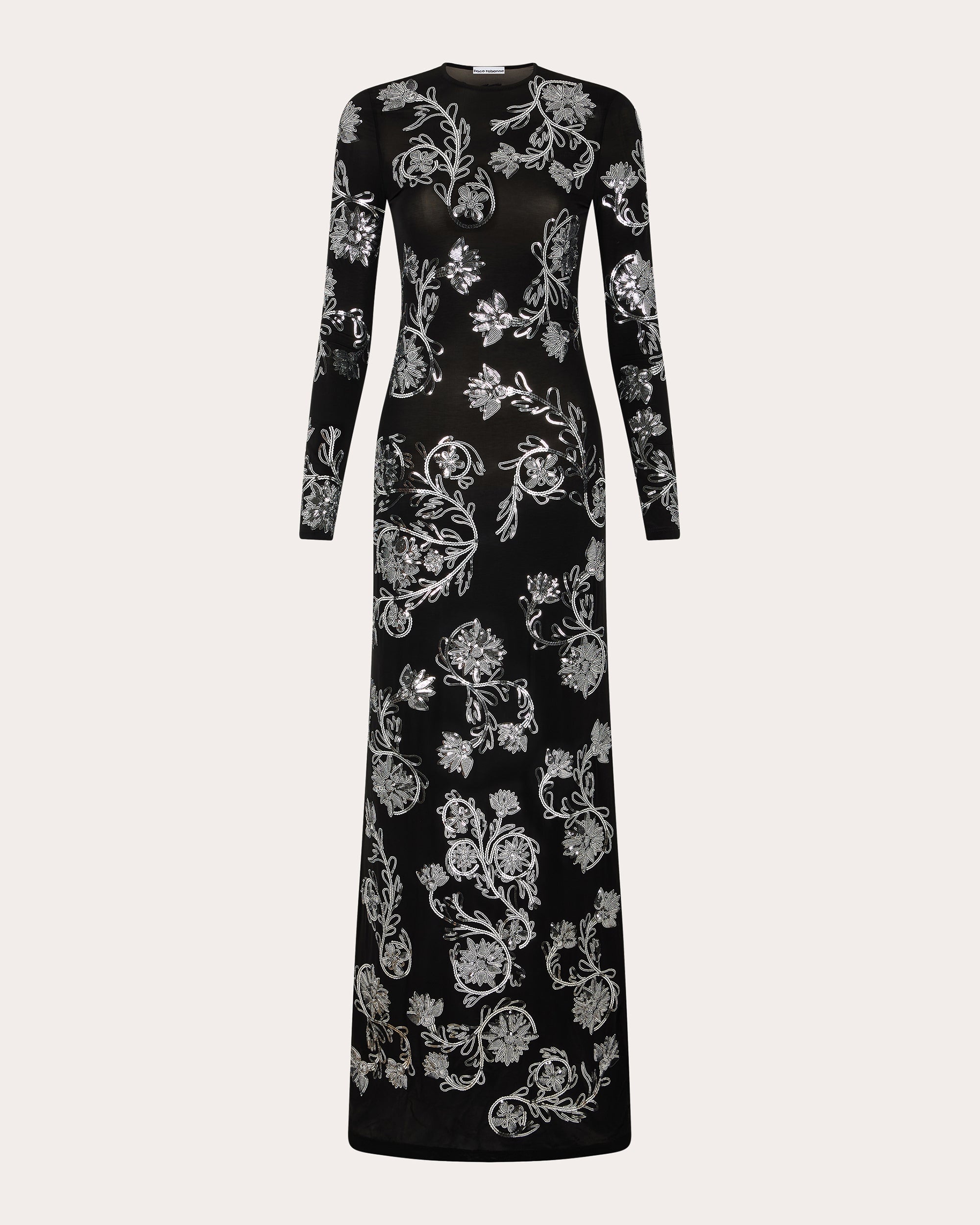 Simple tailoring meets elevated detailing in this long-sleeve dress that decorates its stretch-infused silhouette with swirls of sequin embellishments. The maxi-length skirt tapers effortlessly into an A-line shape at the hem. Designer color name: Black Pull-on Sequin embellishments 90% cupro, 10% elastane Dry clean only Made in Portugal Size & Fit Size FR 34 (US 2 / XS): 31.89in chest, 24.02in waist, 34.25in hips Size FR 36 (US 4 / S): 33.46in bust, 25.59in waist, 35.83in hips Size FR 38 (US 6 / M): 35.04in bust, 27.17in waist, 37.4in hips Size FR 40 (US 8 / L): 36.61in bust, 28.74in waist, 38.98in hips Size FR 42 (US 10 / XL): 38.19in bust, 30.31in waist, 40.55in hips Please note, above measurements reflect Rabanne's size chart, not the actual garment.
