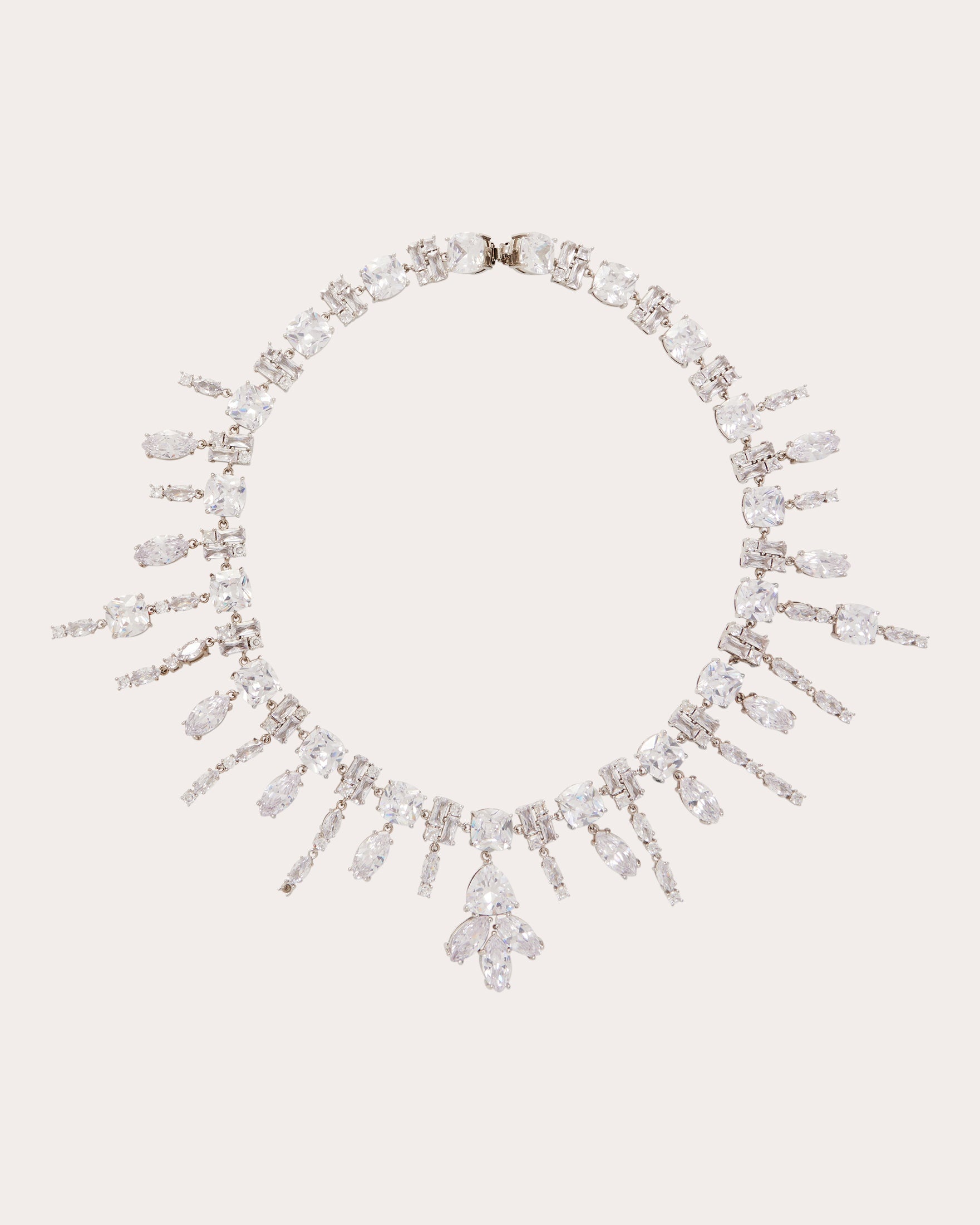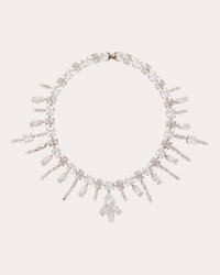 Rooted in geometric inspiration, this Rabanne necklace forms its ornate chandelier design from various cuts of Strass crystals—including cushion, round, baguette, princess and marquise. The concealed clasp and stones's prong settings are crafted from solid silver-tone brass. Concealed clasp closure Silver-tone brass and strass crystal Polish with soft cloth Made in Italy Measurements Length: 15.75in