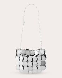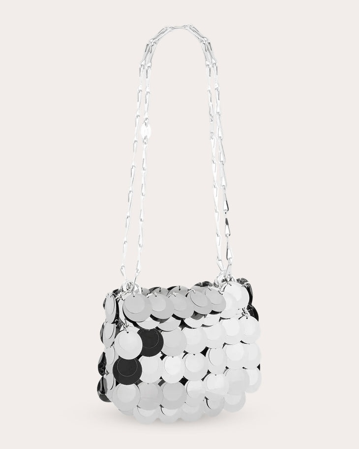 A nod to Rabanne's iconic, inaugural aesthetic, this pliable bag is comprised of mirrored silver discs bonded together by little metal rings. Smaller in stature, this nano bag is perfect for eveningwear occasions. Designer color name: Silver Chain link strap Silver-tone hardware Mirrored silver discs Metal ring bonding 90% polyester, 10% brass Clean with soft cloth Made in Madagascar Measurements Width: 6.29in Height: 4.92in Depth: 0.98in