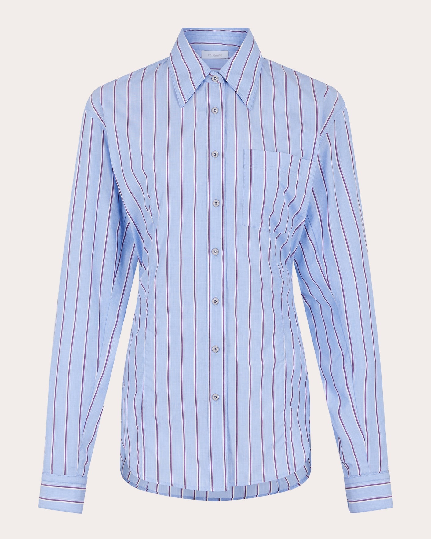 Crafted from striped cotton, this Rabanne button-up gives nod to traditional shirting with its collared neckline, seamed yoke and curved hem. A self-tying belt at the back waist creates flattering, tailored shape. Designer color name: Striped White and Blue Button closure Collared neckline Self-tie belt (back waist) Seamed back yoke Front chest pocket Button sleeve cuffs Curved shirttail hem 100% cotton Dry clean Made in Tunisia Size & Fit Model (wearing size FR 36 / US 4): 5ft 11in tall True to size. Designed for a loose fit. Use ties to cinch waist. Lightweight, non-stretchy fabric. Please note, below measurements reflect Rabanne's size chart, not the actual garment. Size FR 34 (US 2 / XS): 31.89in chest, 24.02in waist, 34.25in hips Size FR 36 (US 4 / S): 33.46in bust, 25.59in waist, 35.83in hips Size FR 38 (US 6 / M): 35.04in bust, 27.17in waist, 37.4in hips Size FR 40 (US 8 / L): 36.61in bust, 28.74in waist, 38.98in hips Size FR 42 (US 10 / XL): 38.19in bust, 30.31in waist, 40.55in hips Size FR 44 (US 12 / XXL): 39.76in bust, 31.89in waist, 42.13in hips