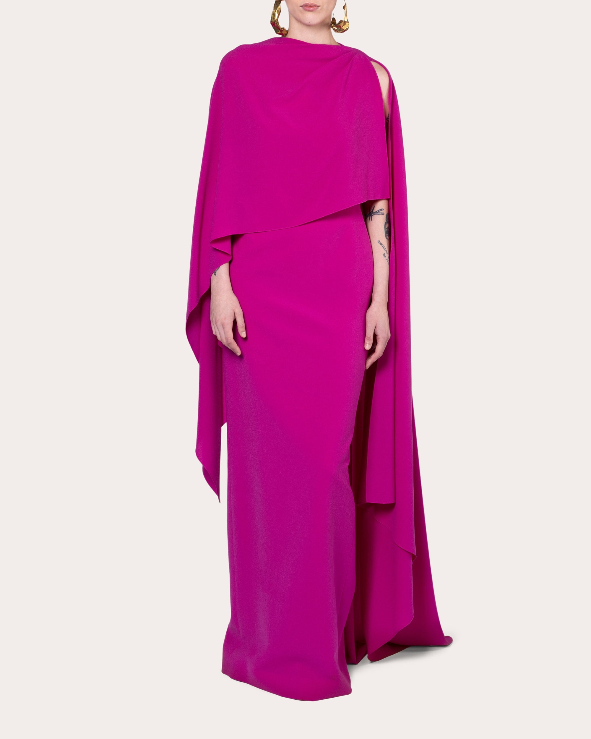 True to Roksanda's architectural roots, the Demetria dress features a slim silhouette woven from signature bonded crepe. Cascading cape overlay is draped asymmetrically across the shoulders and open back for a floor-sweeping finale. Zip closure Asymmetric cape overlay Open back bodice Vented back hem Crepe Self: 60% acetate, 40% polyester Lining: 100% silk Dry clean Made in China Size & Fit True to size. Designed for a slim fit with loose overlay. Mid-weight, non-stretchy fabric. Please note, below measurements reflect Roksanda's size chart, not the actual garment. Size UK 6 (US 0-2 / XS): 33.07in bust; 25.2in waist; 35.43in low hip Size UK 8 (US 4 / S): 33.86in bust; 25.98in waist; 36.22in low hip Size UK 10 (US 6 / S/M): 35.43in bust; 27.56in waist; 37.8in low hip Size UK 12 (US 8 / M): 37.4in bust; 29.53in waist; 39.76in low hip Size UK 14 (US 10 / M/L): 39.37in bust; 31.5in waist; 41.73in low hip Size UK 16 (US 12 / L): 41.34in bust; 33.46in waist; 43.7in low hip