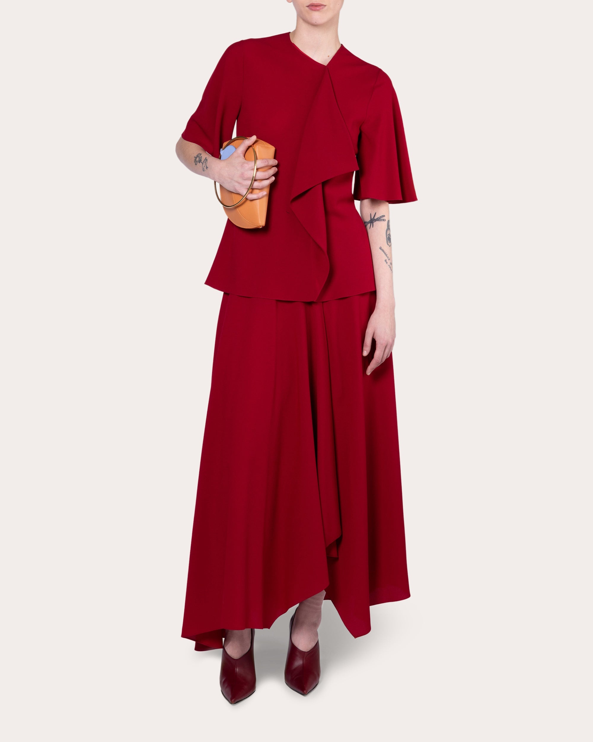 A vision in crimson red crepe, the Naiara top embraces fluid dimension with its central folded drape detail. Short flutter sleeves create feminine appeal. Back keyhole clasp closure Folded neckline drape Flutter sleeves Crepe Self: 60% acetate, 40% polyester Lining: 73% acetate, 27% silk Dry clean Made in China Size & Fit Garment measurements (size US 4 / UK 8): 25.98in long from high point of shoulder to hem, 33.85in bust, 32.67in waist, 37in hips True to size. Designed to be fitted at waist. Mid-weight, non-stretchy fabric. Please note, below measurements reflect Roksanda's size chart, not the actual garment. Size UK 6 (US 0-2 / XS): 33.07in bust; 25.2in waist; 35.43in low hip Size UK 8 (US 4 / S): 33.86in bust; 25.98in waist; 36.22in low hip Size UK 10 (US 6 / S/M): 35.43in bust; 27.56in waist; 37.8in low hip Size UK 12 (US 8 / M): 37.4in bust; 29.53in waist; 39.76in low hip Size UK 14 (US 10 / M/L): 39.37in bust; 31.5in waist; 41.73in low hip Size UK 16 (US 12 / L): 41.34in bust; 33.46in waist; 43.7in low hip