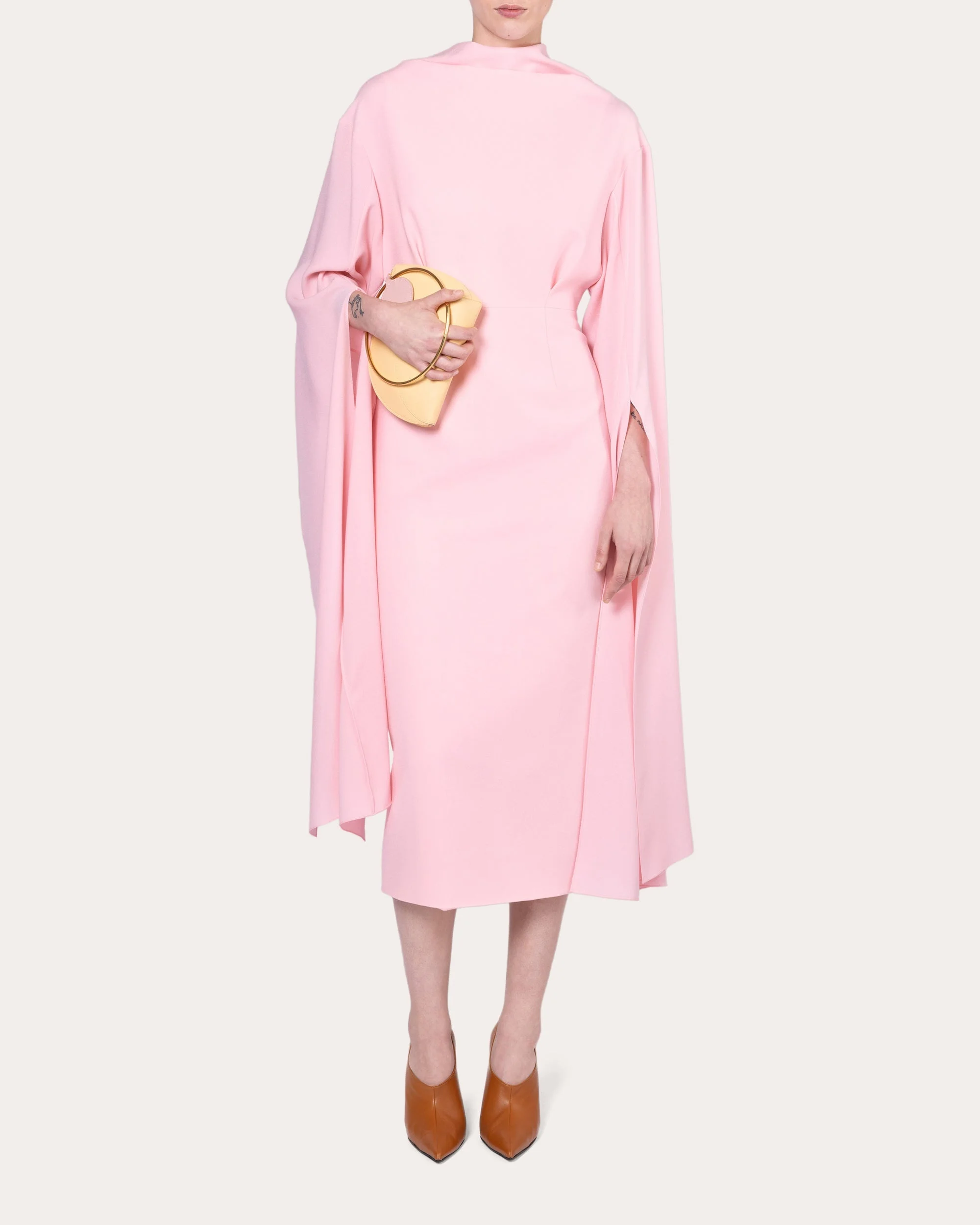 True to Roksanda's architectural roots, the Nour dress frames its draped neckline with sweeping cape sleeves. The fitted waistline is gently tailored with tucked pleats in the front and darted seams in the back to create flattering shape. Back-zip closure Draped collar V-cut back bodice Fitted waistline Darted back waist Tucked front bodice pleats Split cape sleeves Vented back hem Crepe Self: 60% acetate, 40% polyester Lining: 73% acetate, 27% silk Dry clean Made in China Size & Fit Fits true to size Please note, below measurements reflect Roksanda's size chart, not the actual garment. Size UK 6 (US 0-2 / XS): 33.07in bust; 25.2in waist; 35.43in low hip Size UK 8 (US 4 / S): 33.86in bust; 25.98in waist; 36.22in low hip Size UK 10 (US 6 / S/M): 35.43in bust; 27.56in waist; 37.8in low hip Size UK 12 (US 8 / M): 37.4in bust; 29.53in waist; 39.76in low hip Size UK 14 (US 10 / M/L): 39.37in bust; 31.5in waist; 41.73in low hip Size UK 16 (US 12 / L): 41.34in bust; 33.46in waist; 43.7in low hip