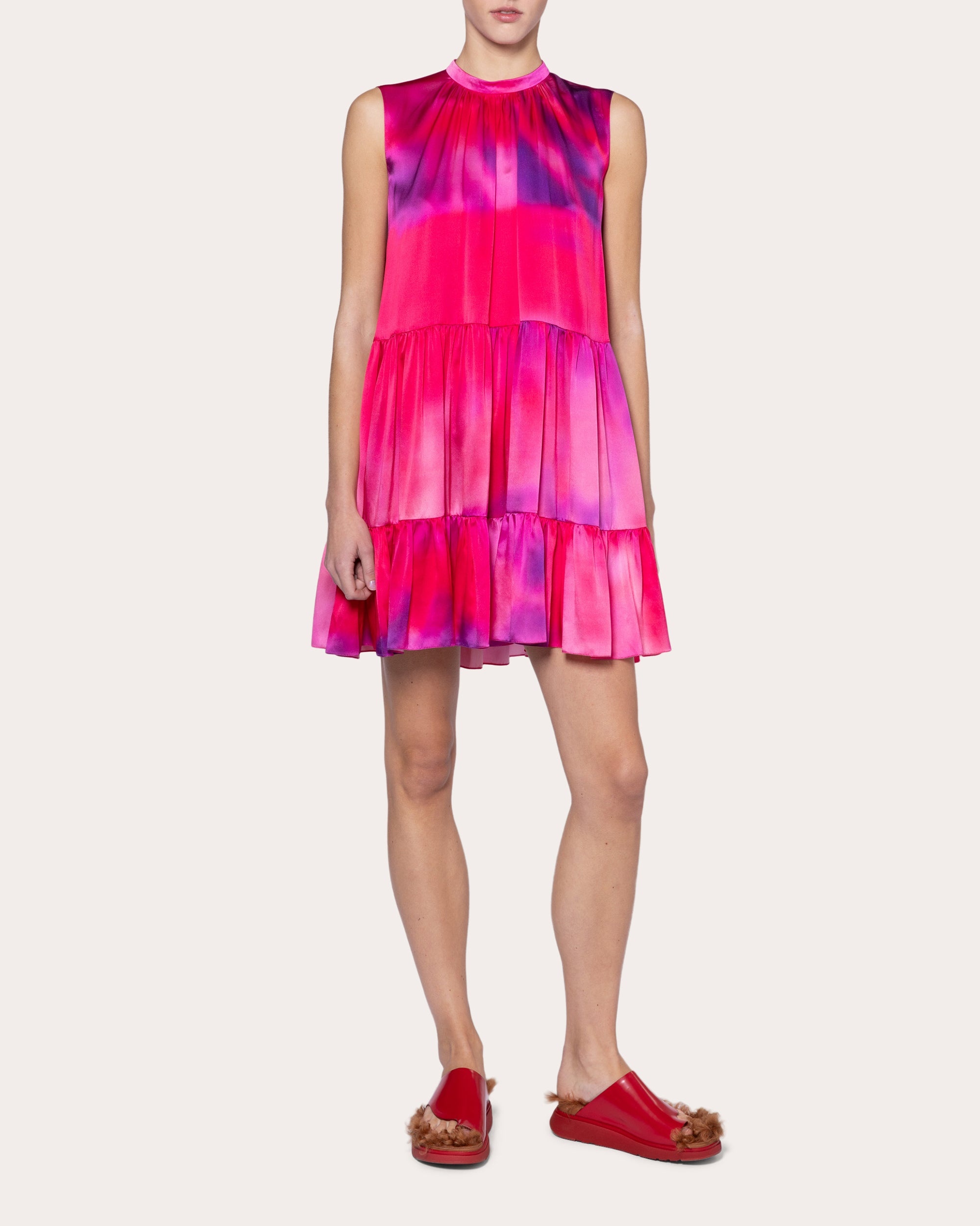 A study in complementary colors, the Phinia dress decorates its silk satin canvas with a colorfully abstract print. Gathered detailing at the neckline mirrors that of the skirt's tiers for balanced, dimensional appeal. Back hook-and-eye clasp Gathered neckline Gathered tiers Satin Self: 70% viscose, 30% silk Lining: 73% acetate, 27% silk Dry clean Made in China Size & Fit Fits true to size Please note, below measurements reflect Roksanda's size chart, not the actual garment. Size UK 6 (US 0-2 / XS): 33.07in bust; 25.2in waist; 35.43in low hip Size UK 8 (US 4 / S): 33.86in bust; 25.98in waist; 36.22in low hip Size UK 10 (US 6 / S/M): 35.43in bust; 27.56in waist; 37.8in low hip Size UK 12 (US 8 / M): 37.4in bust; 29.53in waist; 39.76in low hip Size UK 14 (US 10 / M/L): 39.37in bust; 31.5in waist; 41.73in low hip Size UK 16 (US 12 / L): 41.34in bust; 33.46in waist; 43.7in low hip