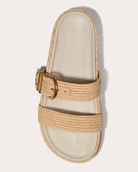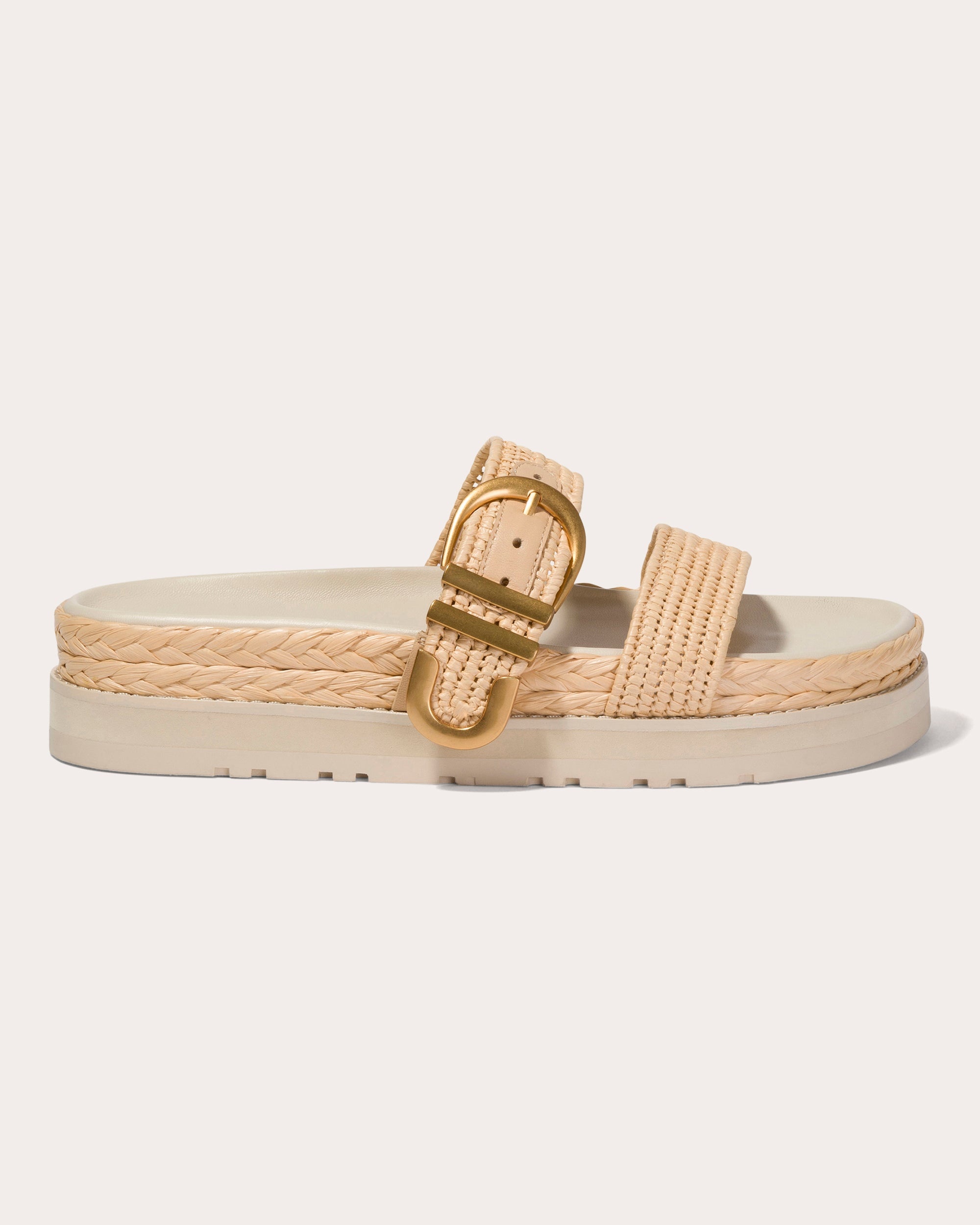 Crafted from woven raffia, the. Aida sandal outfits one of its two straps with a polished goldtone buckle. The treaded platform sole offers elevated grip. Slip-on Buckled strap Treaded platform sole Upper: 100% woven raffia Lining: 100% sheep leather Outsole: 100% rubber Spot clean Made in China Size & Fit Platform height: 1.96in (50mm)