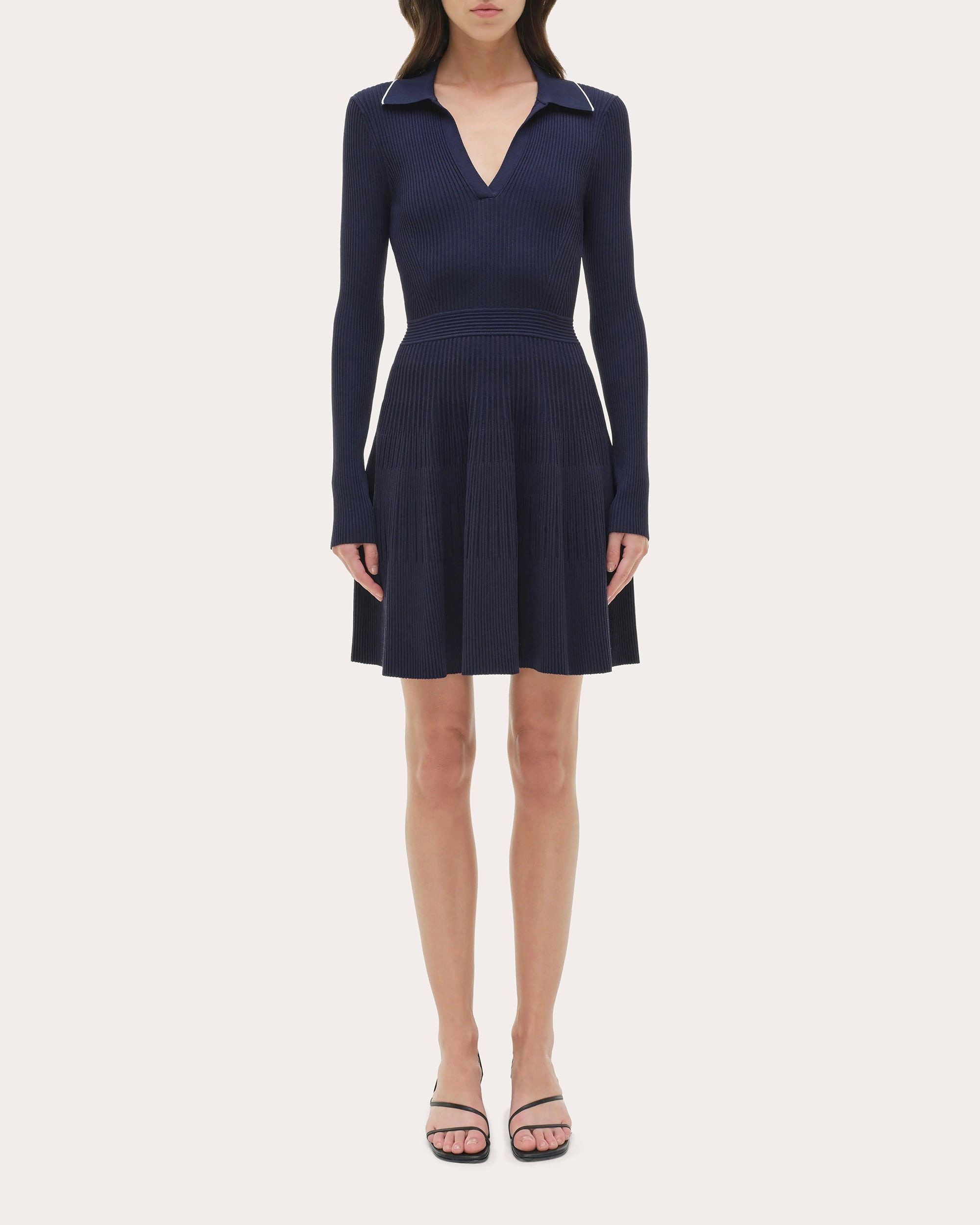 Spun from a compact rib knit, the Alcott dress fits slim throughout the bodice and waist before flaring gently at the hem. The contrast-trimmed polo collar creates a polished effect. Designer color: midnight Pull-on Polo collar Banded waist Compact rib knit 65% rayon, 19% nylon, 14% polyester, 2% spandex Dry clean only Made in China Size & Fit Model (wearing size S): 5ft 10in tall Fits true to size Please note, below measurements reflect SIMKHAI's size chart, not the actual garment. Size XS (US 0-2): 32-33in bust, 25-26in natural waist, 35.5-36.5in low hip Size S (US 4-6): 34-35.25in bust, 27-28.25in natural waist, 37.5-38.75in low hip Size M (US 8-10): 36.5-38in bust, 29.5-31in natural waist, 40-41.5in low hip Size L (US 12): 39.5in bust, 32.5in natural waist, 43in low hip