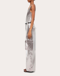 Tailored with a relaxed wide-leg shape, the Beatriz pants are crafted from metallic fabric for a high-shine effect. Cargo-style pockets reflect utilitarian inspiration. Zip-fly and clasp closure High-rise waist Wide-cut legs Cargo pockets Metallic coating 100% polyester Spot clean only Imported Size & Fit Model (wearing size US 2): 5ft 11in tall Please note, below measurements reflect SIMKHAI's size chart, not the actual garment. Size US 0: 32in bust, 25in natural waist, 35.5in low hip Size US 2: 33in bust, 26in natural waist, 36.5in low hip Size US 4: 34in bust, 27in natural waist, 37.5in low hip Size US 6: 35.25in bust, 28.25in natural waist, 38.75in low hip Size US 8: 36.5in bust, 29.5in natural waist, 40in low hip Size US 10: 38in bust, 31in natural waist, 41.5in low hip Size US 12: 39.5in bust, 32.5in natural waist, 43in low hip