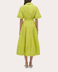 Crafted from crisp cotton faille, the Deanna dress frames its V-cut neckline with a classic shirt collar and cuffed short sleeves. Belted at the waist, the skirt's subtle pleats create a voluminous A-line shape. Zip closure Collared neckline Belted waist Pleated skirt Side pockets Faille 62% cotton, 38% polyamide Dry clean Made in China Size & Fit Model (wearing size US 2): 5ft 10in tall Fits true to size Please note, below measurements reflect SIMKHAI's size chart, not the actual garment. Size US 0: 32in bust, 25in natural waist, 35.5in low hip Size US 2: 33in bust, 26in natural waist, 36.5in low hip Size US 4: 34in bust, 27in natural waist, 37.5in low hip Size US 6: 35.25in bust, 28.25in natural waist, 38.75in low hip Size US 8: 36.5in bust, 29.5in natural waist, 40in low hip Size US 10: 38in bust, 31in natural waist, 41.5in low hip Size US 12: 39.5in bust, 32.5in natural waist, 43in low hip