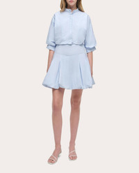 Rooted in traditional shirting, the Effie dress tailors its cotton poplin silhouette with a mandarin collar, front button closure and wide, fitted waistband. Gathering along the sleeve cuffs and bubble hem creates architectural dimension. Designer color: French blue Side zip and front button closure Mandarin collar Gathered elbow sleeves Fitted waistband Side pockets Gathered bubble skirt Poplin Self: 63% cotton, 37% polyester Lining: 100% polyester Dry clean only Made in China Size & Fit Model (wearing size US 2): 5ft 10in tall Fits true to size Please note, below measurements reflect SIMKHAI's size chart, not the actual garment. Size US 0: 32in bust, 25in natural waist, 35.5in low hip Size US 2: 33in bust, 26in natural waist, 36.5in low hip Size US 4: 34in bust, 27in natural waist, 37.5in low hip Size US 6: 35.25in bust, 28.25in natural waist, 38.75in low hip Size US 8: 36.5in bust, 29.5in natural waist, 40in low hip Size US 10: 38in bust, 31in natural waist, 41.5in low hip Size US 12: 39.5in bust, 32.5in natural waist, 43in low hip
